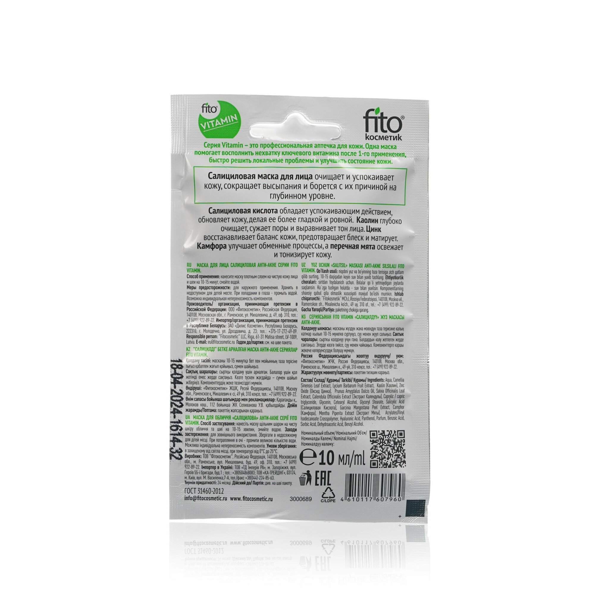 Маска для лица Fito Vitamin Салициловая Анти-акне 10мл ФИТОКОСМЕТИК