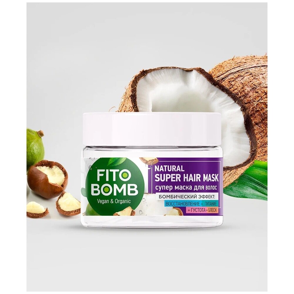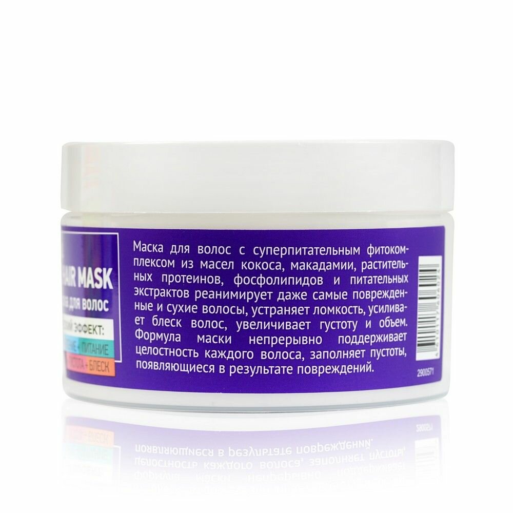 Маска для волос с суперпитательным фитокомплексом из масел кокоса, макадамии, растительных протеинов, фосфолипидов и питательных экстрактов реанимирует даже самые поврежденные и сухие волосы, устраняет ломкость, усиливает блеск волос, увеличивает густоту и объем.