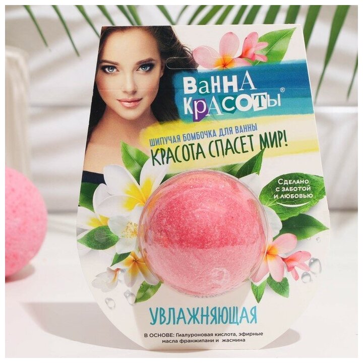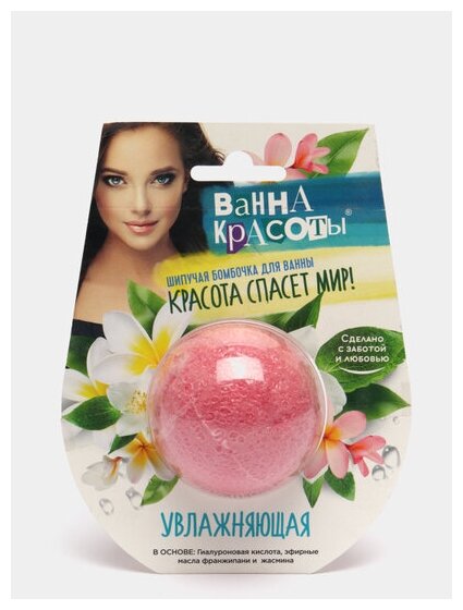 Шипучая бомбочка для ванны «Увлажняющая» – это истинная ванна красоты. Она питает, увлажняет и насыщает кожу ценными маслами. Кожа гладкая и бархатистая - как после спа-процедур. Гиалуроновая кислота глубоко насыщает влагой и придает тонус. Эфирное масло франжипани восстанавливает упругость кожи и окутывает тело нежным ароматом. Эфирное масло жасмина успокаивает и помогает расслабиться.