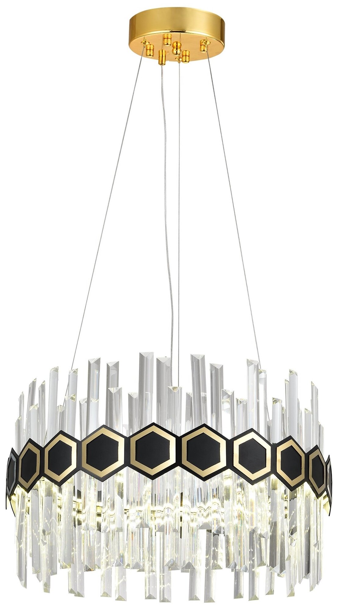 Люстра создана в традициях изысканного стиля ар-деко, для которого характерна любовь к выразительному сочетанию золотого и чёрного, эффектной декоративности и утончённым художественным решениям. Хрустальный водопад подвесок вносит дополнительную нотку роскоши, а когда вы включите свет — люстра будет охвачена сиянием. При этом аксессуар благодаря геометрическому орнаменту и воздушной лёгкости впишется не только в классическую и ар-дековскую обстановку, но и в современную. Led-подсветка и управление с помощью смартфона делают это изделие достойным представителем хайтековских светильников.