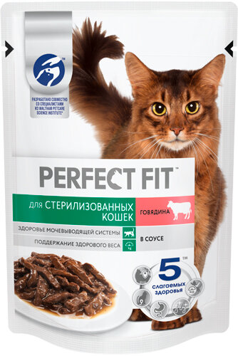Sterile для стерилизованных говядина в соусе пауч 75г PERFECT FIT