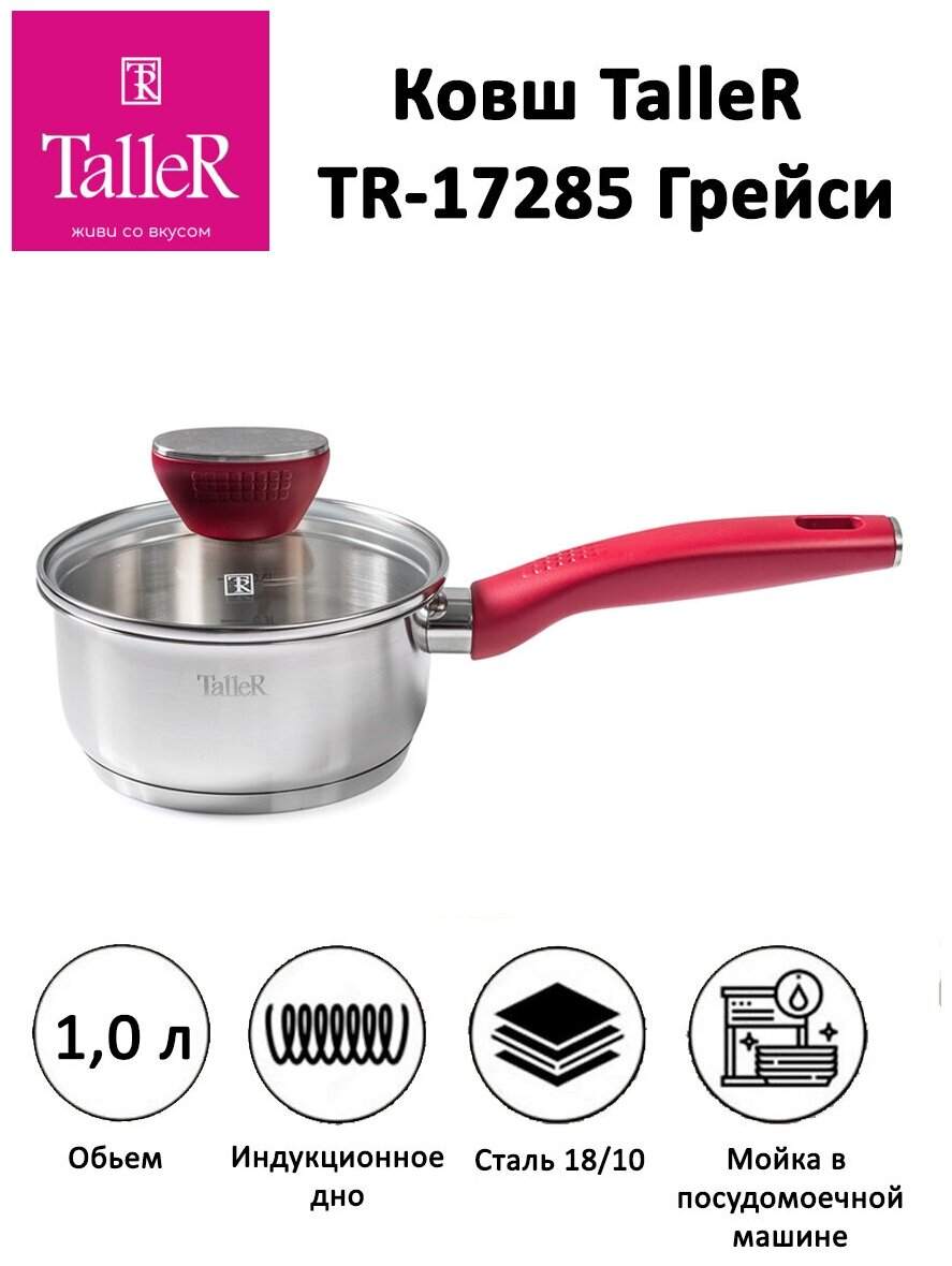 Ковш TalleR TR-17285 10л Ковш Грейси с крышкой 14 см 1 л TR-17285