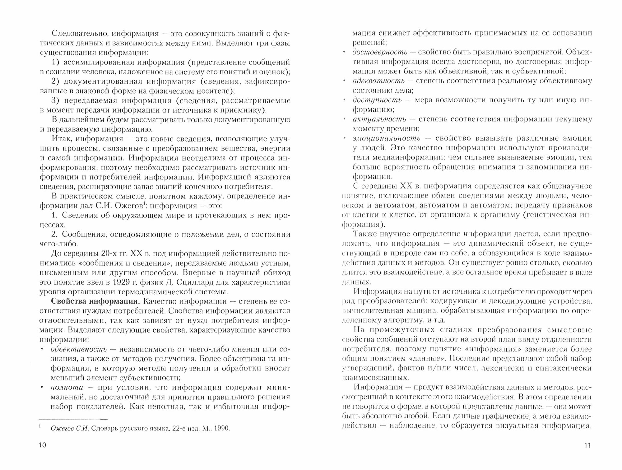 Приведены базовые понятия в области информатики, описаны основные категории аппаратных и программных средств вычислительной техники, принципы построения архитектуры вычислительных систем. Рассмотрены структурная организация данных и основы алгоритмизации, виды программного обеспечения, классификация информационных технологий и систем, современные системы автоматизации документооборота и делопроизводства, основы построения систем искусственного интеллекта, геоинформационных систем, систем виртуальной реальности, а также основы информационной безопасности.
