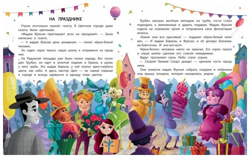 Чёрно-белый человек живёт в Цветном городе. Все жители города носят цветную одежду, их лица имеют яркий цвет - чёрно-белого человека никто не замечает. Он решает стать таким же, как все, и раскрашивает лицо розовой краской, но потом смывает её, потому что понимает - с ней он перестал быть собой.