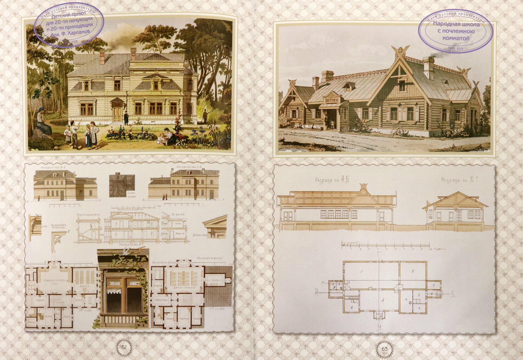 В альбоме "Идеи русской архитектуры" опубликованы эскизы и планы жилых домов, общественных зданий и построек, деталей декора…