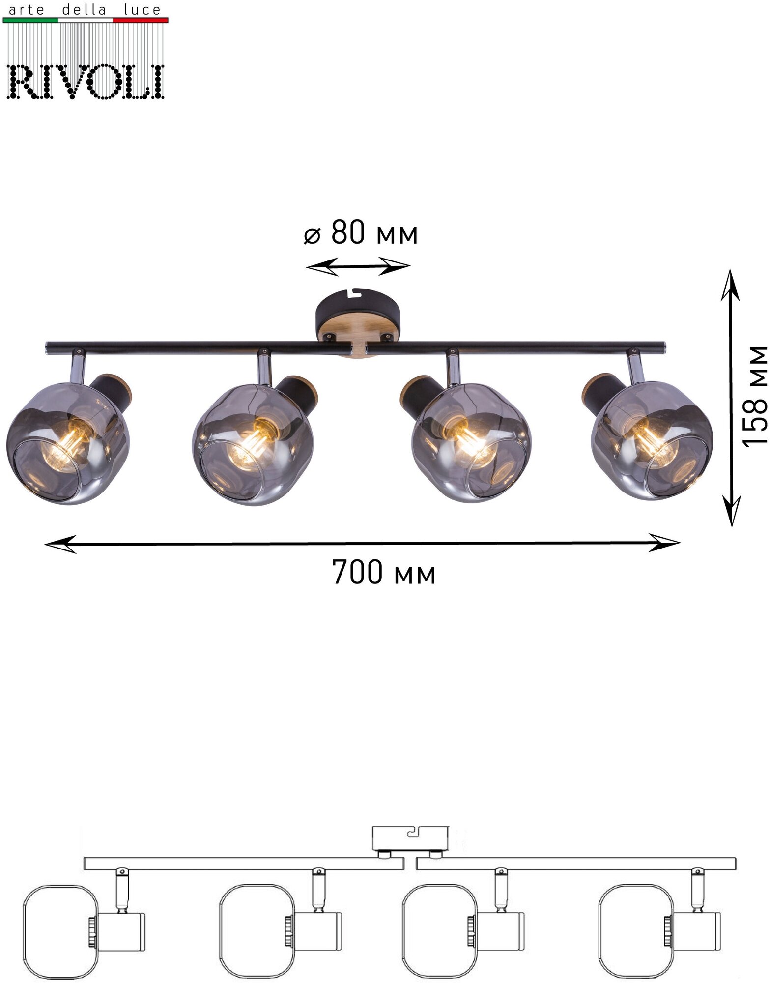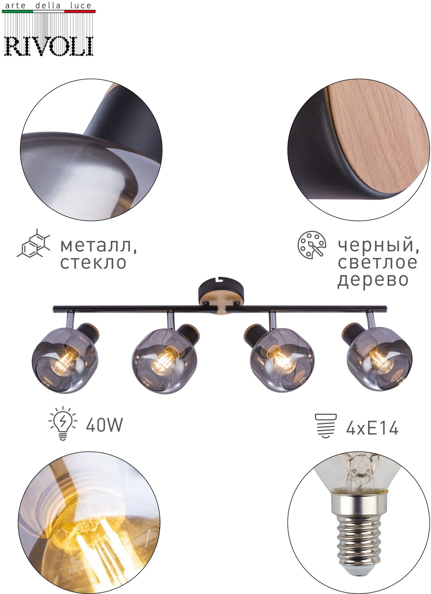 Спот RIVOLI Dorkas 40Вт патрон Е14 х 4шт накладной на потолок черный/светлое дерево 7026-704