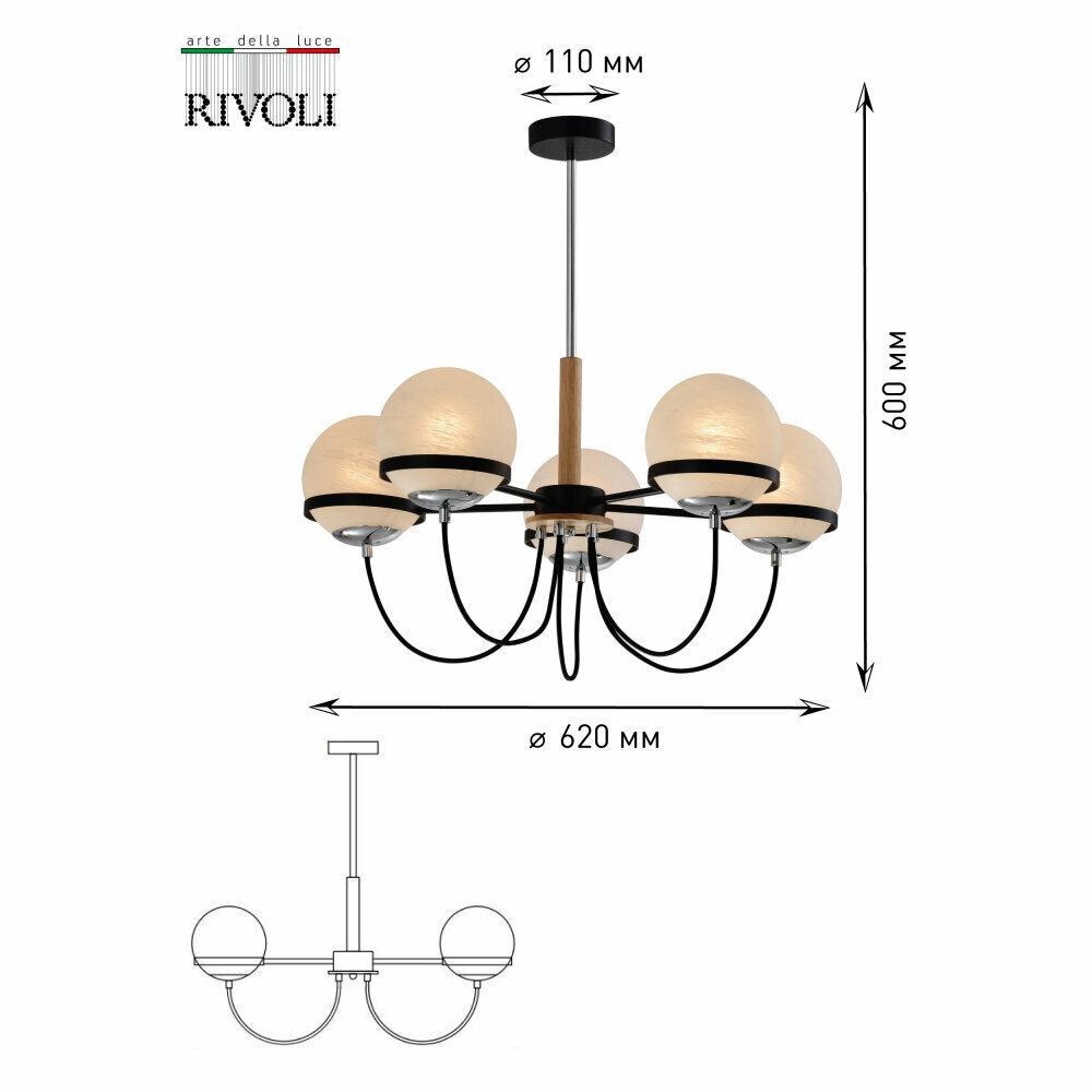 Люстра RIVOLI Ailano 40Вт черный/хром 3066-305