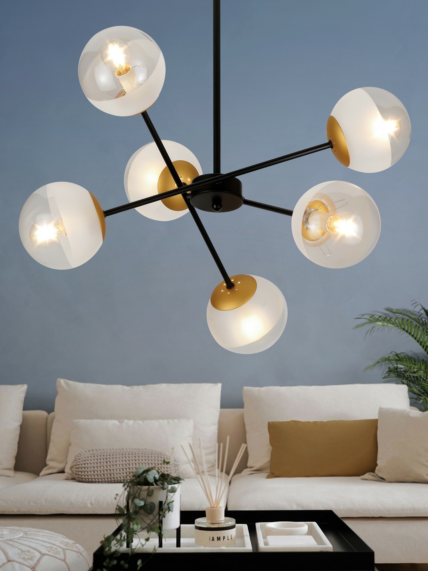 Как напоминание о том, что в жизни баланс нужен во всём, серия Areta уравновесит интерьер своими идеальными комбинациями. Кто сказал, что плафон должен быть только матовым или только прозрачным? Мы смело соединяем оба эти свойства и получаем уникальное оформление и яркое освещение. Второе гармоничное сочетание тандем чёрного и золотого уже стало новой классикой. Коллекция представлена потолочной люстрой на 6 ламп.