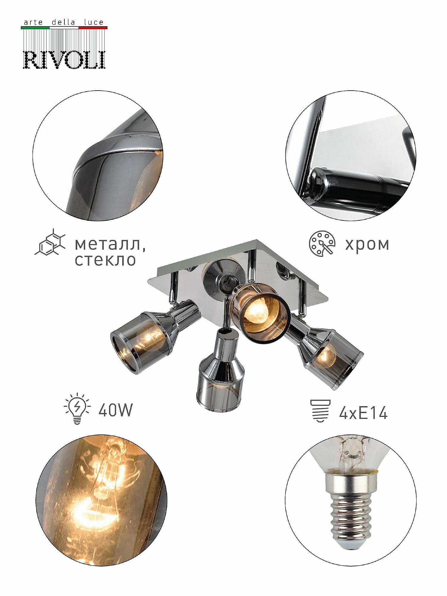 Спот RIVOLI Elektra 40Вт патрон Е14 х 4шт накладной на потолок хром 7046-704