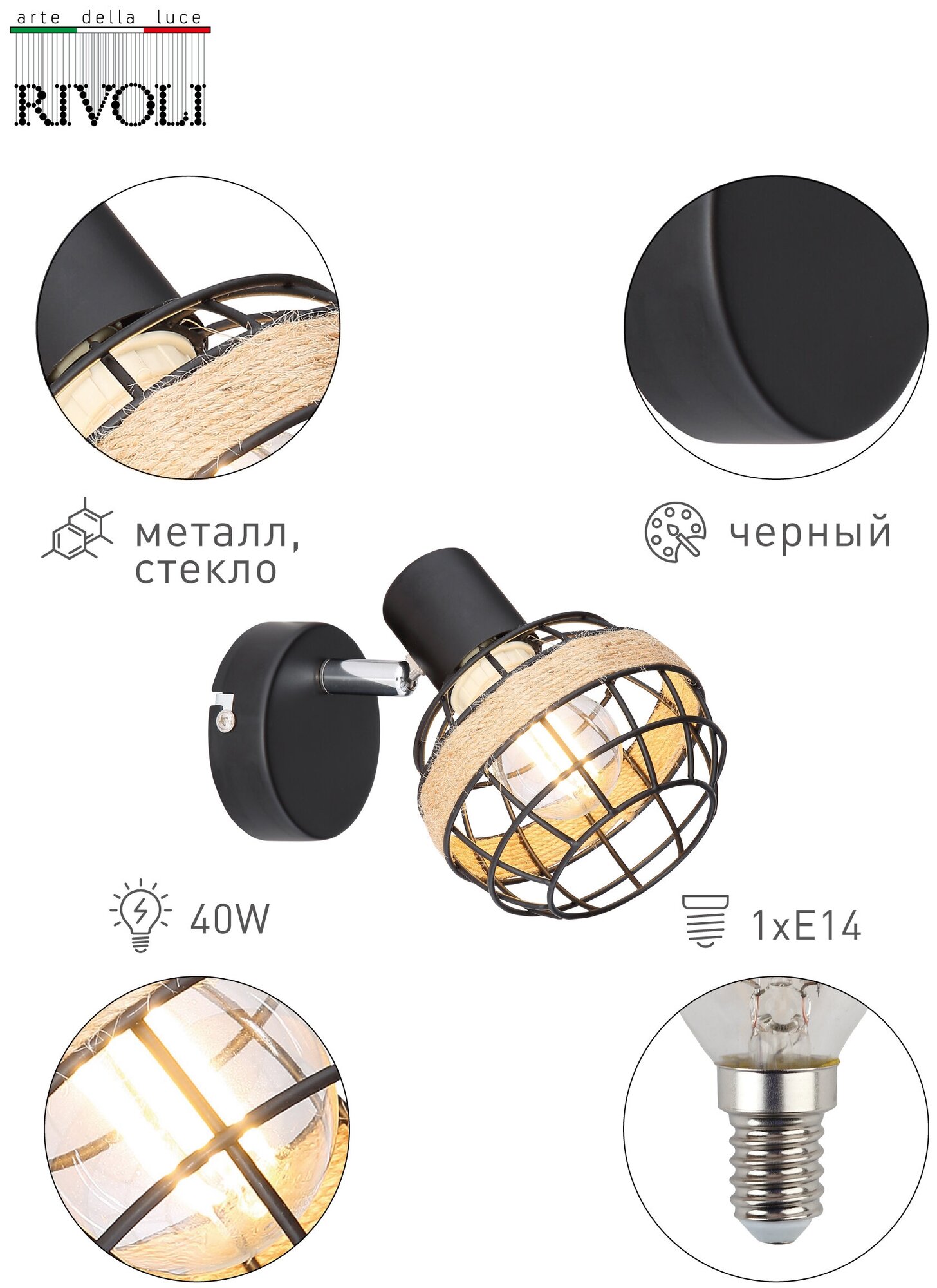 Сервис сравнения цен СкидкаГИД предлагает сравнить цены на товар «Спот RIVOLI Fedora 40Вт патрон Е14 х 1шт черный 7033-701»