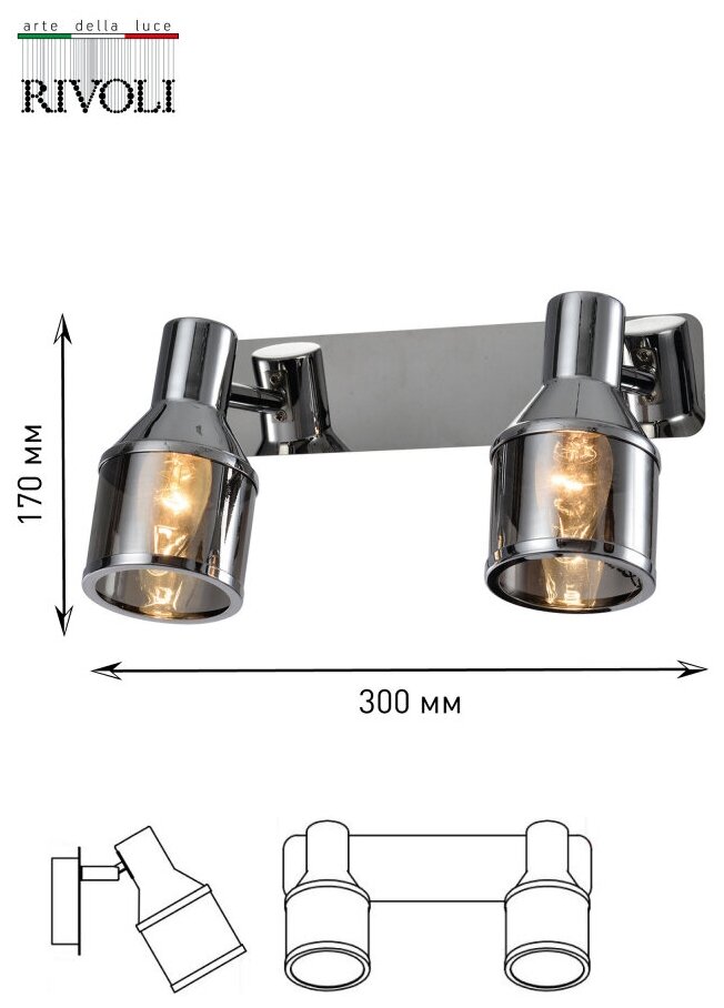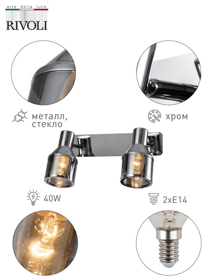 Спот RIVOLI Elektra 40Вт патрон Е14 х 2шт накладной на стену хром 7046-702