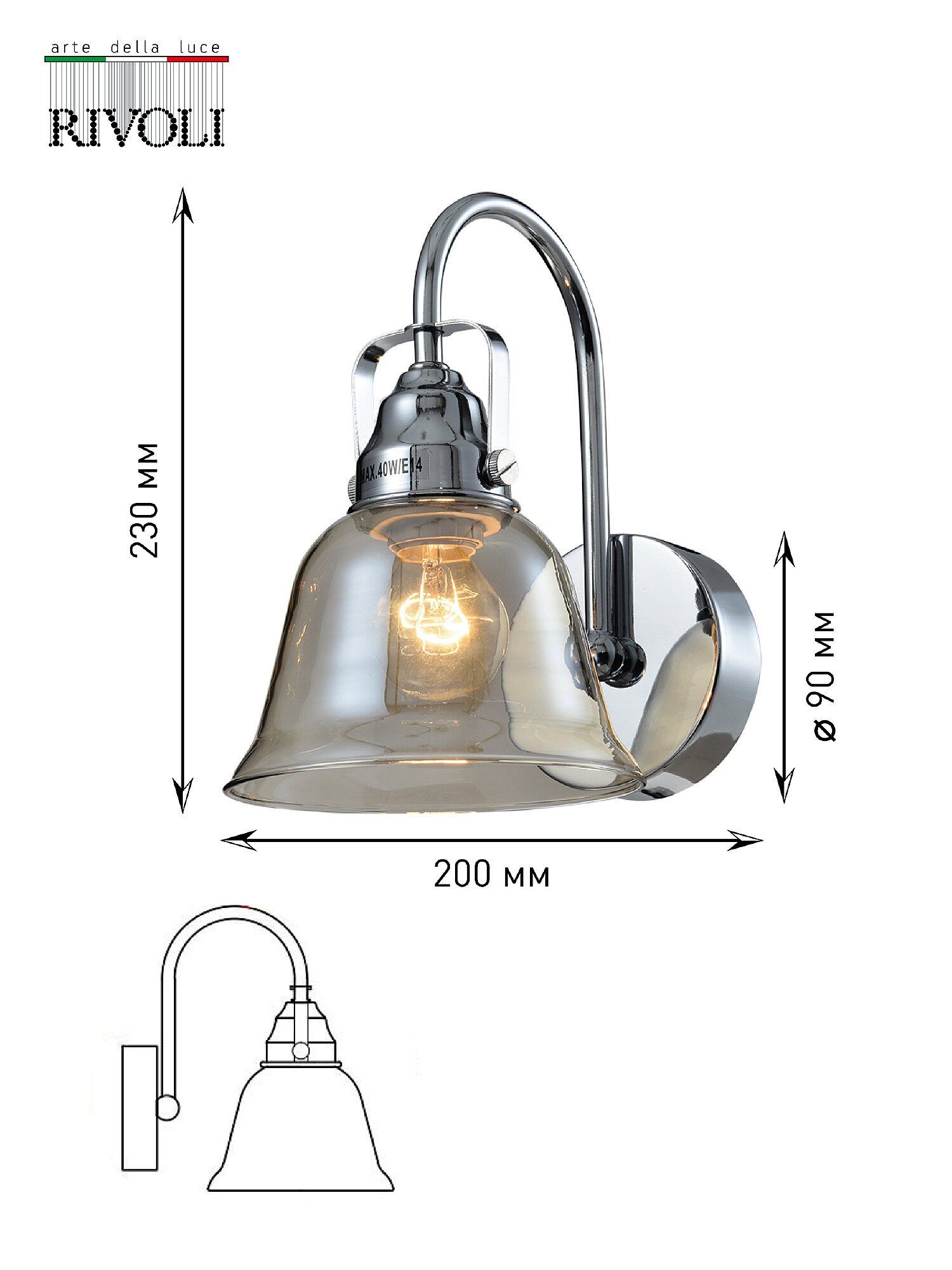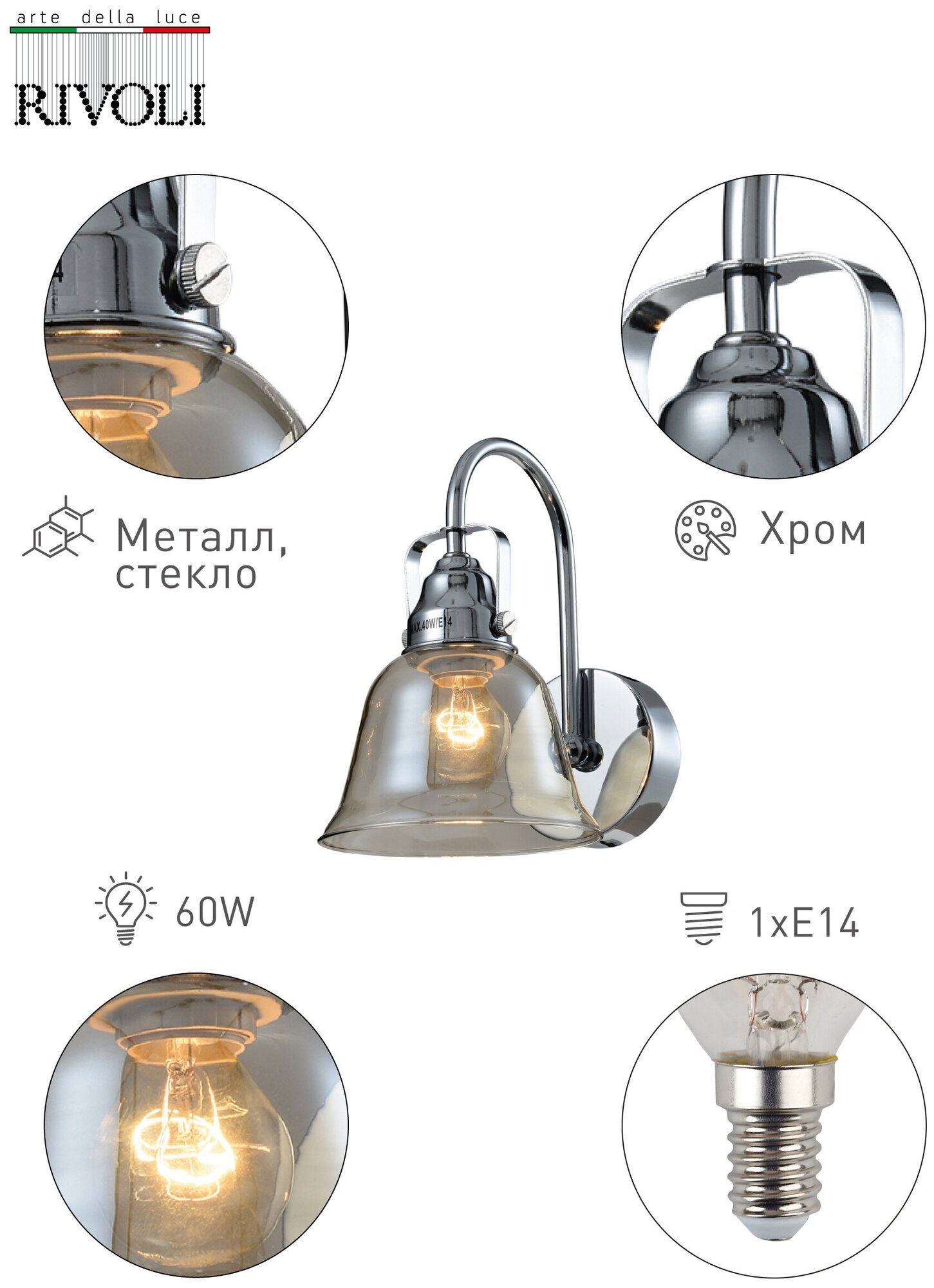 Бра RIVOLI Avrora 40Вт хром 5055-701