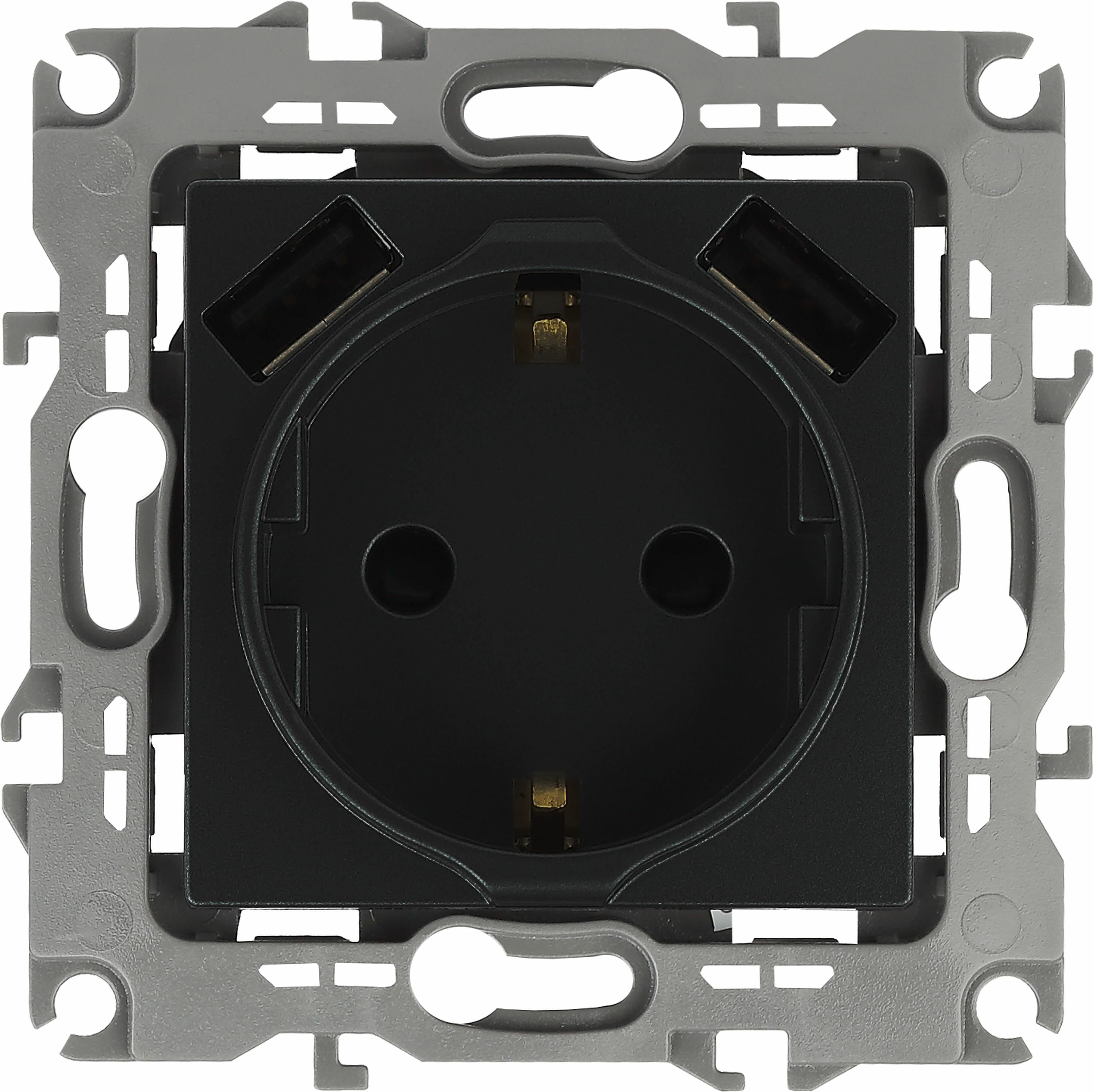 Розетка силовая/USB Эра Серия 12 скрытая заземление антрацит 12-4109-05