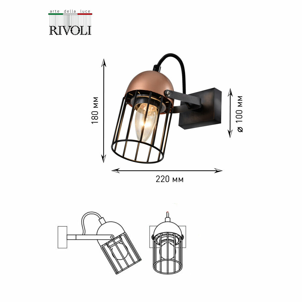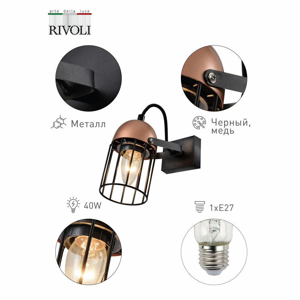 Спот RIVOLI Anemon 40Вт патрон Е27 х 1шт черный/медь 5062-701