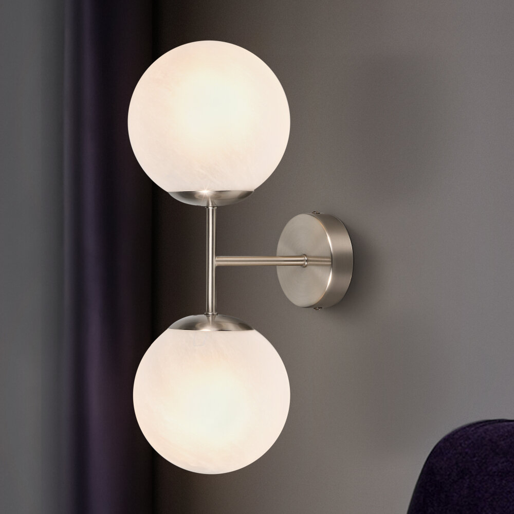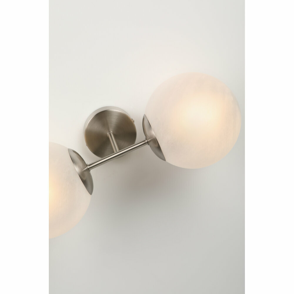 Бра Rivoli Agata Б0047303 из коллекции Agata от производителя Rivoli из Италии. Изделие выполнено в стиле: современный и предназначено для установки на стену. Основание выполнено из металла в цвете никель и оснащено плафонами белого цвета из стекла в форме шар. В светильнике предусмотрено 2 ламп(a) накаливания мощностью 40 W с цоколем E14. Рабочая площадь освещения 6 м2. Степень защиты бра выполнена по технологии IP20. Влагозащита: IP20 Интерьер: Для гостиной