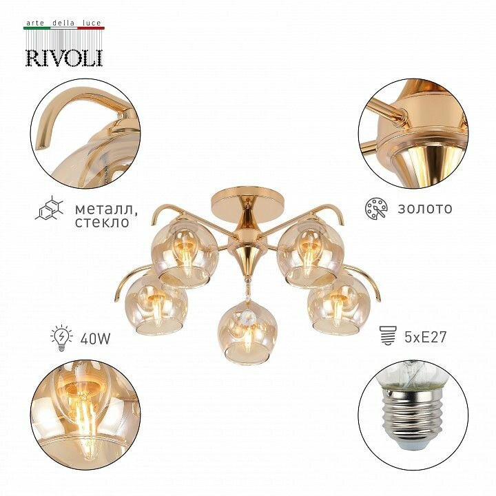 Люстра RIVOLI Oda 40Вт золото 9033-305
