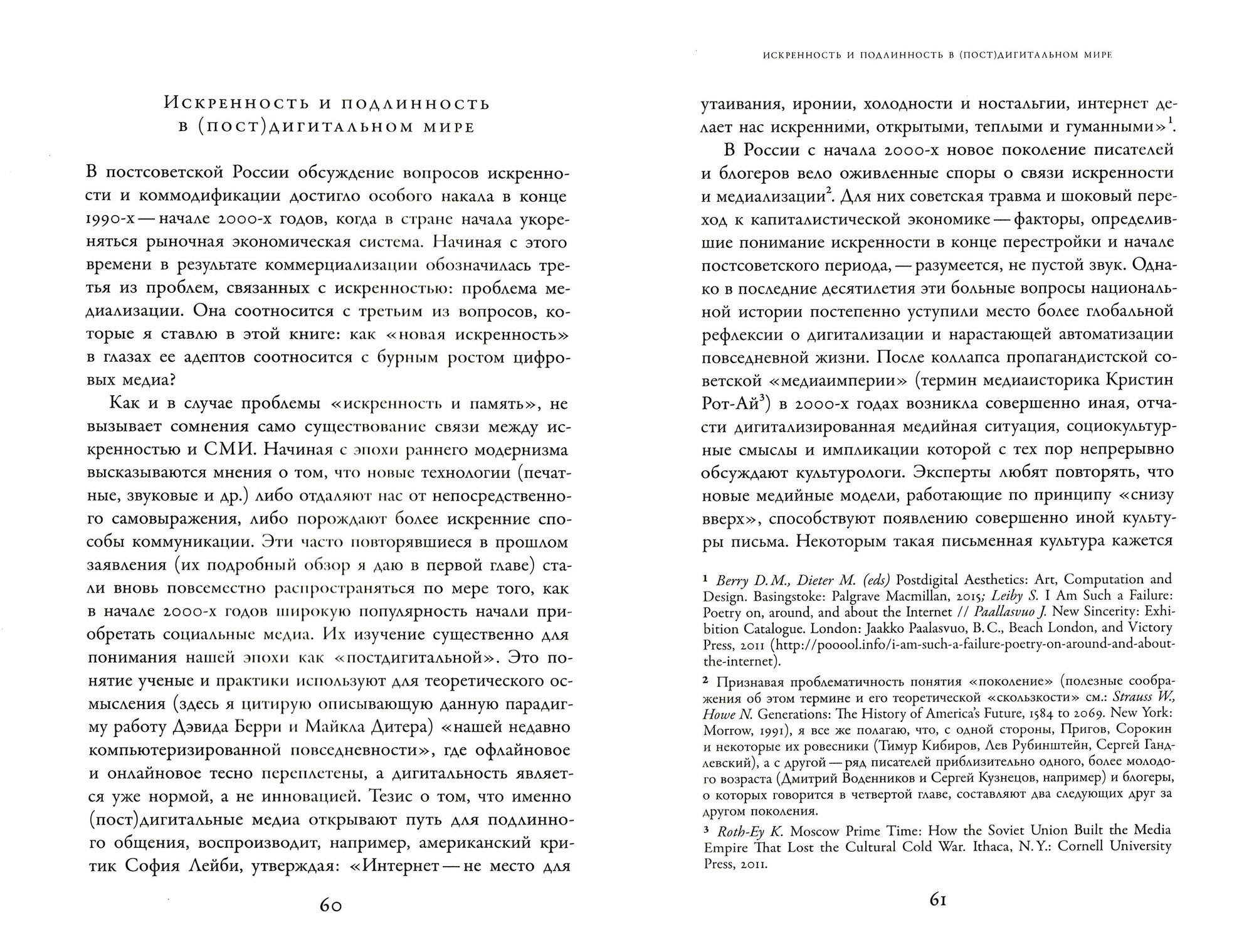 Новая искренность стала глобальным культурным феноменом вскоре после краха коммунистической системы. Ее влияние ощущается в литературе и журналистике, искусстве и дизайне, моде и кино, рекламе и архитектуре. В своей книге историк культуры Эллен Руттен прослеживает, как зарождается и проникает в общественную жизнь новая риторика прямого социального высказывания с характерным для нее сложным сочетанием предельной честности и иронической словесной игры. Анализируя этот мощный тренд, берущий истоки в позднесоветской России, автор поднимает важную тему трансформации идентичности в посткоммунистическом, постмодернистском и постдигитальном мире. Она также стремится ответить на вопрос, как и почему уникальная российская художественная и социальная рефлексия сформировалась под влиянием коллективной памяти, коммодификации и медиализации культуры, как дебаты о новой искренности в постсоветском русскоязычном пространстве слились со всеобщим призывом к "возрождению искренности". Работая на пересечении истории эмоций, теории массовых коммуникаций и постсоветских исследований, автор по-новому осмысляет современную культурную реальность, оказывающую глубокое воздействие на творческую мысль, художественную активность и образ жизни практически по всему миру. Эллен Руттен - профессор, глава департамента русистики и славистики Амстердамского университета.