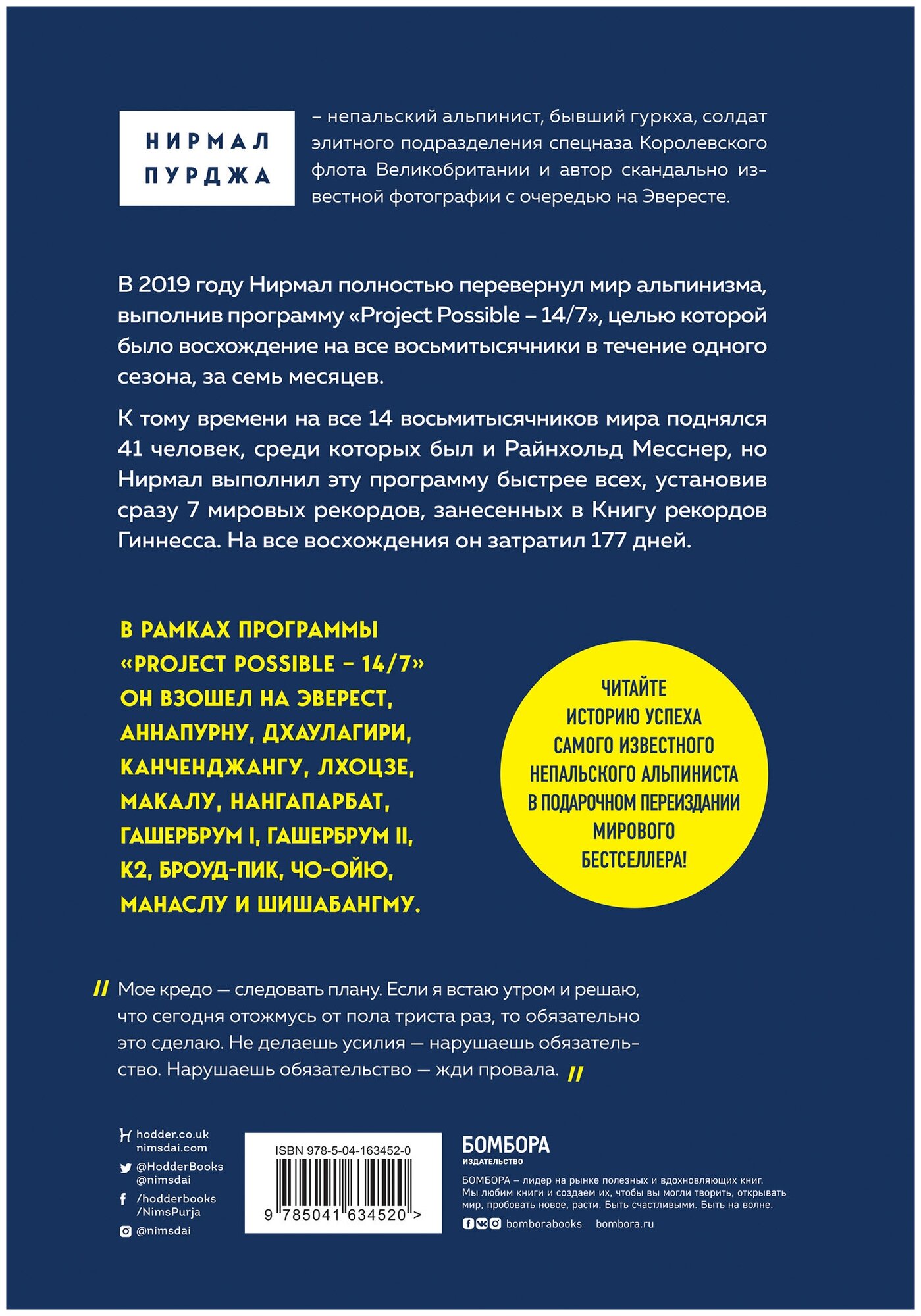 Пока СМИ и мировое альпинистское сообщество исследуют феномен Нирмала, его книга уже переведена на 7 языков, а Netflix выпустил документальный фильм "14 вершин: нет ничего невозможного". Перед вами история успеха самого известного непальского альпиниста в подарочном переиздании!