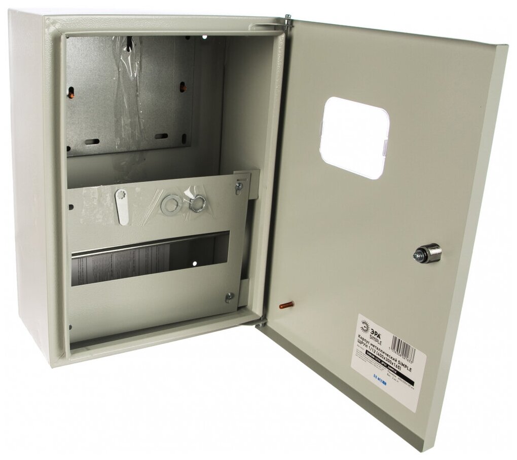 Корпус металлический щрун 1/12 400х300х155 IP31 NO_SIMPLE_STM_SHRUN-1/12_IP31 ЭРА Б0041679Щит учетно-распределительный ЭРА SIMPLE ЩУРн-1/12 IP31 (400х300х155) предназначен для установки приборов учета и распределения электрической энергии, модульных устройств, а также защиты сетей напряжением до 400 В от токов перегрузки и короткого замыкания. Обеспечивает защиту потребителей от поражения электрическим током. Успешно применяется для электромонтажа в жилых, административных, торговых, спортивных и производственных сооружениях. Щит изготовлен из качественной российской стали, имеет жесткий сварной корпус и высококачественное эпоксидно-полиэфирное порошковое наружное покрытие. Установка счетчиков электрической энергии производится на металлическую монтажную панель. Для визуализации показаний счетчика в дверке предусмотрено смотровое окно. Щит изготовлен из высококачественной стали 08 пс ГОСТ 1050-88 методом сварки. Высококачественное порошковое покрытие, цвет RAL 7035. Высокая технологичность и простота монтажа. Возможность установки разных типов электрических счетчиков. Возможность опломбировки. Единый секрет замка. В комплектацию поставки входит замок с двумя ключами. Полная комплектация изделия указана в паспорте. Гарантия от сквозной коррозии 15 лет. Гарантийный срок эксплуатации 1 год.