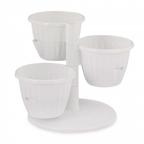 Горшок цветочный "Каскад" предназначен для выращивания различных растений в комнатных условиях. Он состоит из трех горшков с функцией прикорневого полива, установленных на одну платформу. Каждый горшок состоит из двух частей: в верхнюю высаживается растение, а нижняя часть используется как резервуар для воды. Вода заливается в специальный носик на боковой стенке. Каждый горшок имеет объем 0,7 л. Изделие представлено в современных цветовых решениях, которые подходят к любому интерьеру.