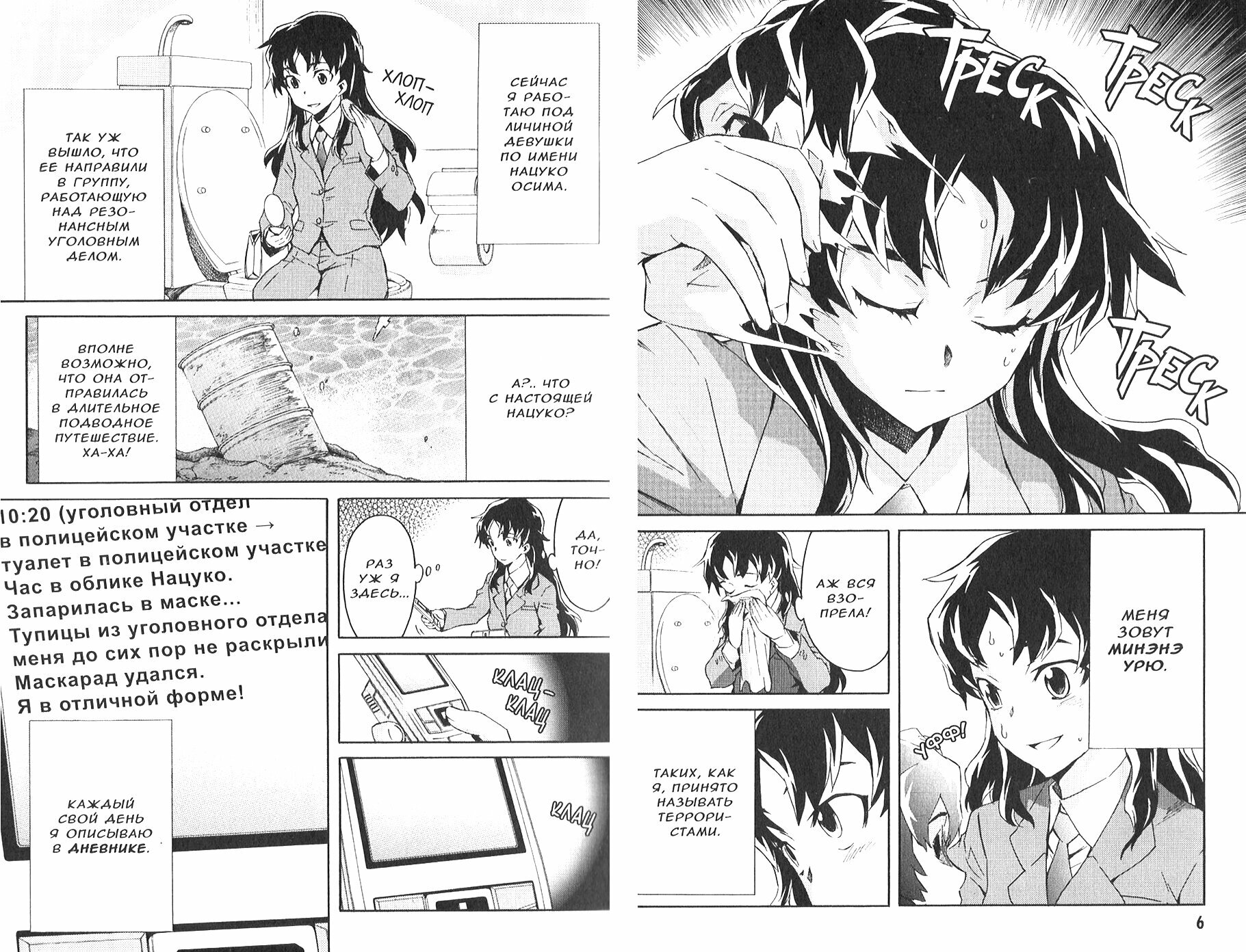 Минэнэ Урю - не только террористка, находящаяся в международном розыске, но и одна из двенадцати обладателей дневников будущего. "Дневник бегства" Минэнэ позволяет ей предвидеть пути отхода и таким образом дает преимущество в смертельной битве с остальными владельцами дневников. Ни соперникам по игре, ни полиции, ни даже спецслужбам не удается поймать изворотливую героиню, превращающую каждый свой побег в феерическое шоу. Беда в том, что живописные детали ее актов эскапизма не отражены в основном повествовании. Теперь это упущение исправлено - встречайте справочник фаната, в котором мы прольем свет на некоторые тайны сюжета "Дневника будущего".