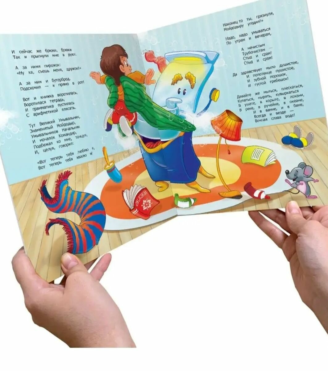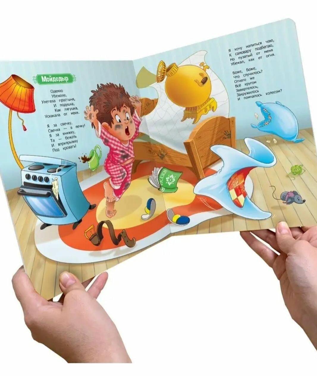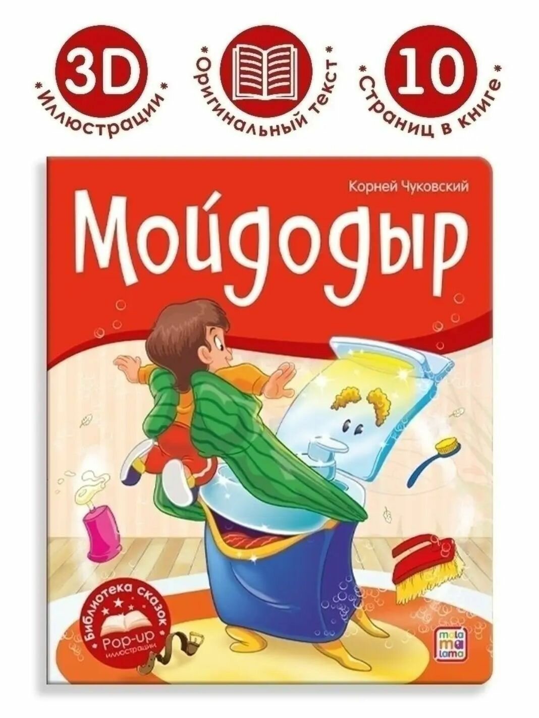 Серия «Библиотека сказок» — это любимые сказки от торговой марки Malamalama. «Мойдодыр» Корнея Чуковского — полюбившаяся всем история о знаменитом персонаже. На ярких страницах книги перед вашим малышом оживёт история о непримиримом Мойдодыре, который рассказывает маленькому мальчику, как важно следить за собой и соблюдать гигиену. Объёмные pop-up элементы помогут проникнуться неповторимой атмосферой. А классический текст знаменитого писателя будет по душе и взрослым, и детям!