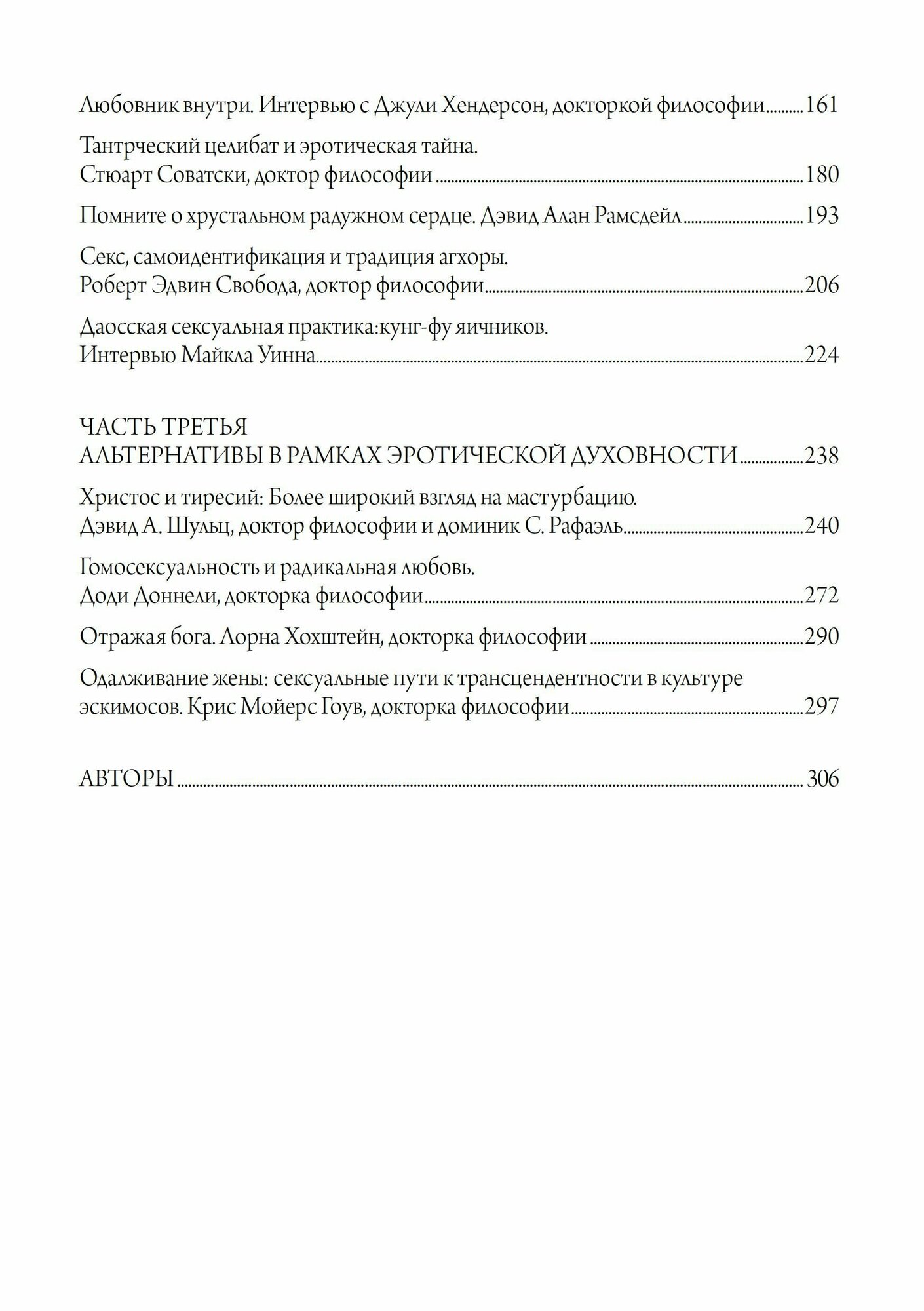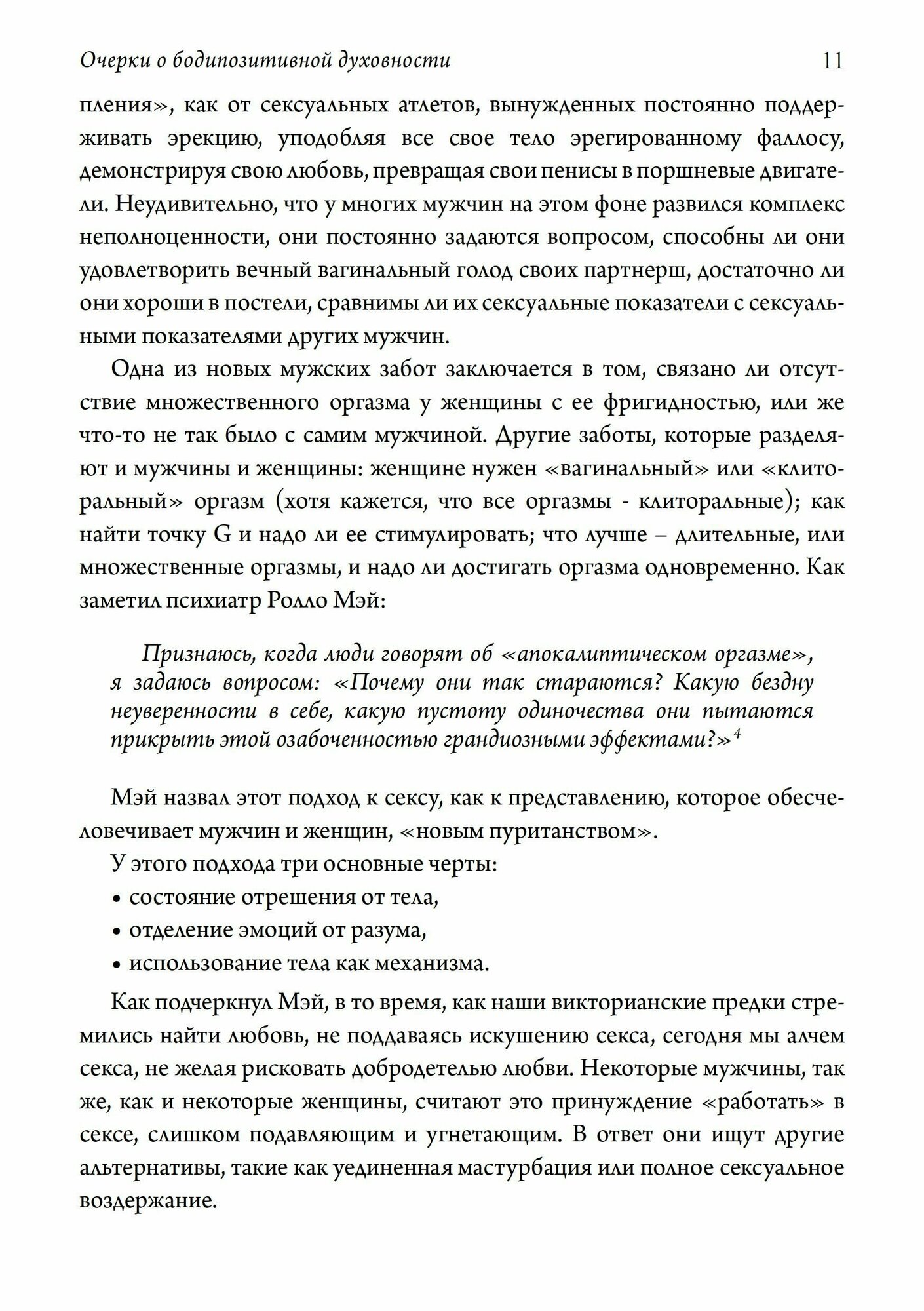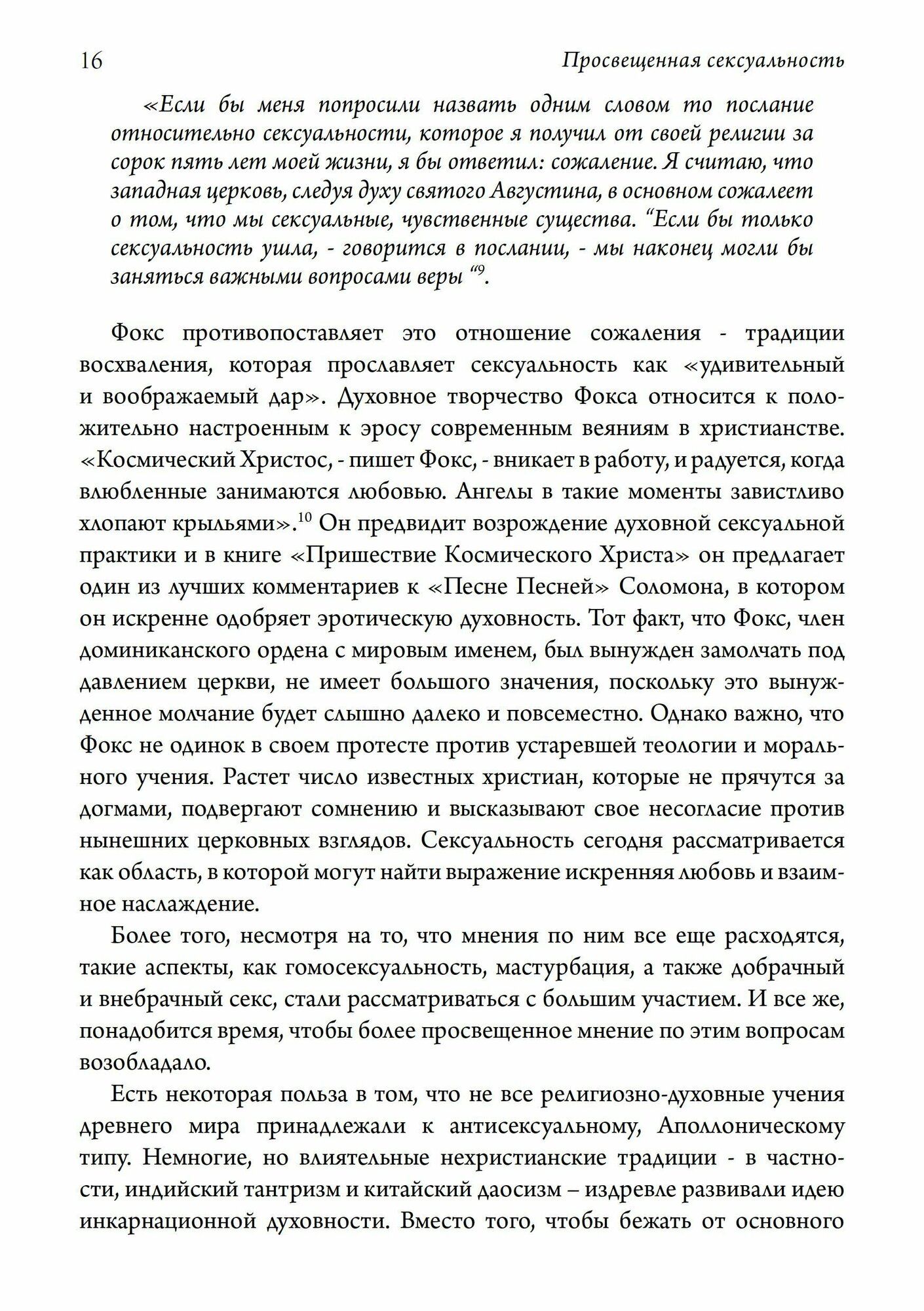 В этой потрясающей книге изложен его глубокий, инновационный взгляд на сексуальность и трансформацию отношения к ней в реалиях мира после Сексуальной Революции. В далеком 1989 году он, цитируя сексологов, докторов философии, поэтов и психологов, дискутируя с ними о вопросах сексуальности и духовности, задал такие сложные и фундаментальные вопросы, которые можно и нужно задавать и сейчас, себе, своему партнеру, обществу. Красной линией через всю книгу проходит идея о том, что невозможно отделять свою сексуальную жизнь от жизни духовной, многогранно раскрыт религиозный взгляд на сексуальность.