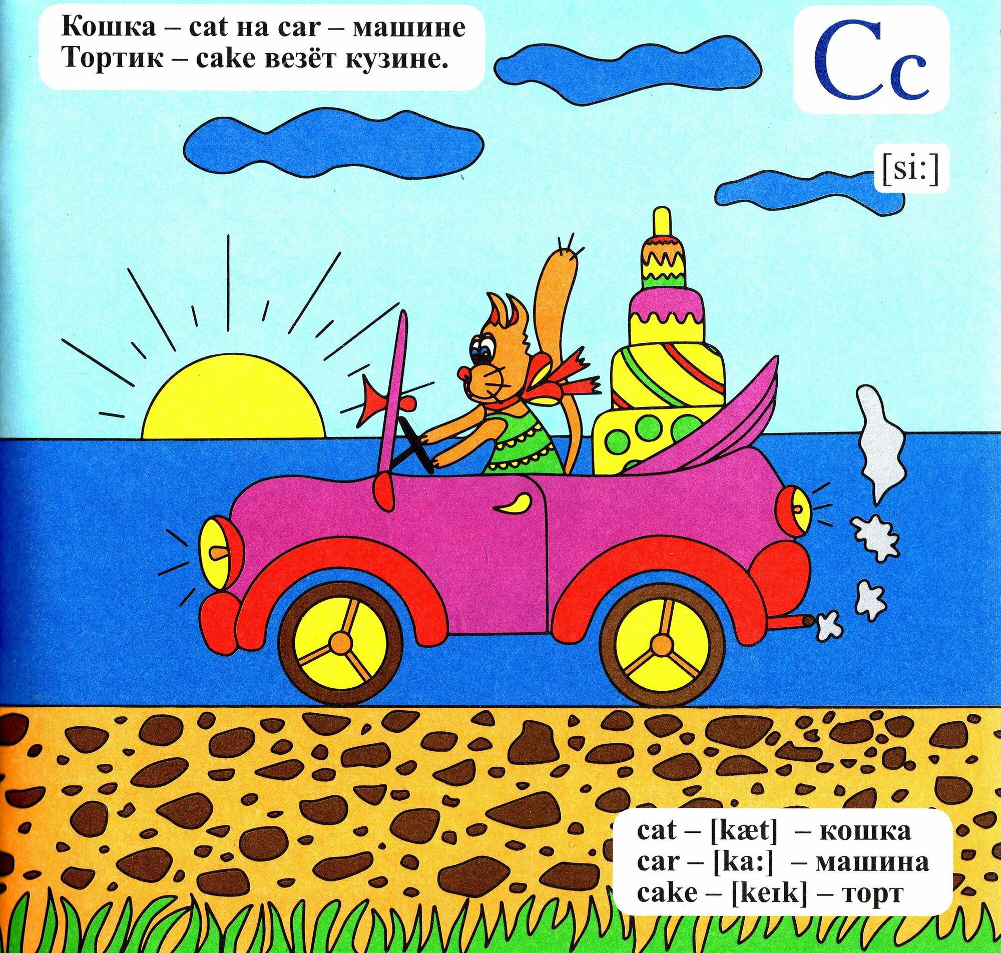 На каждую букву английского алфавита в книге содержится коротенький забавный стишок на русском языке (с 1-3 английскими словами), красочная иллюстрация и раскраска.