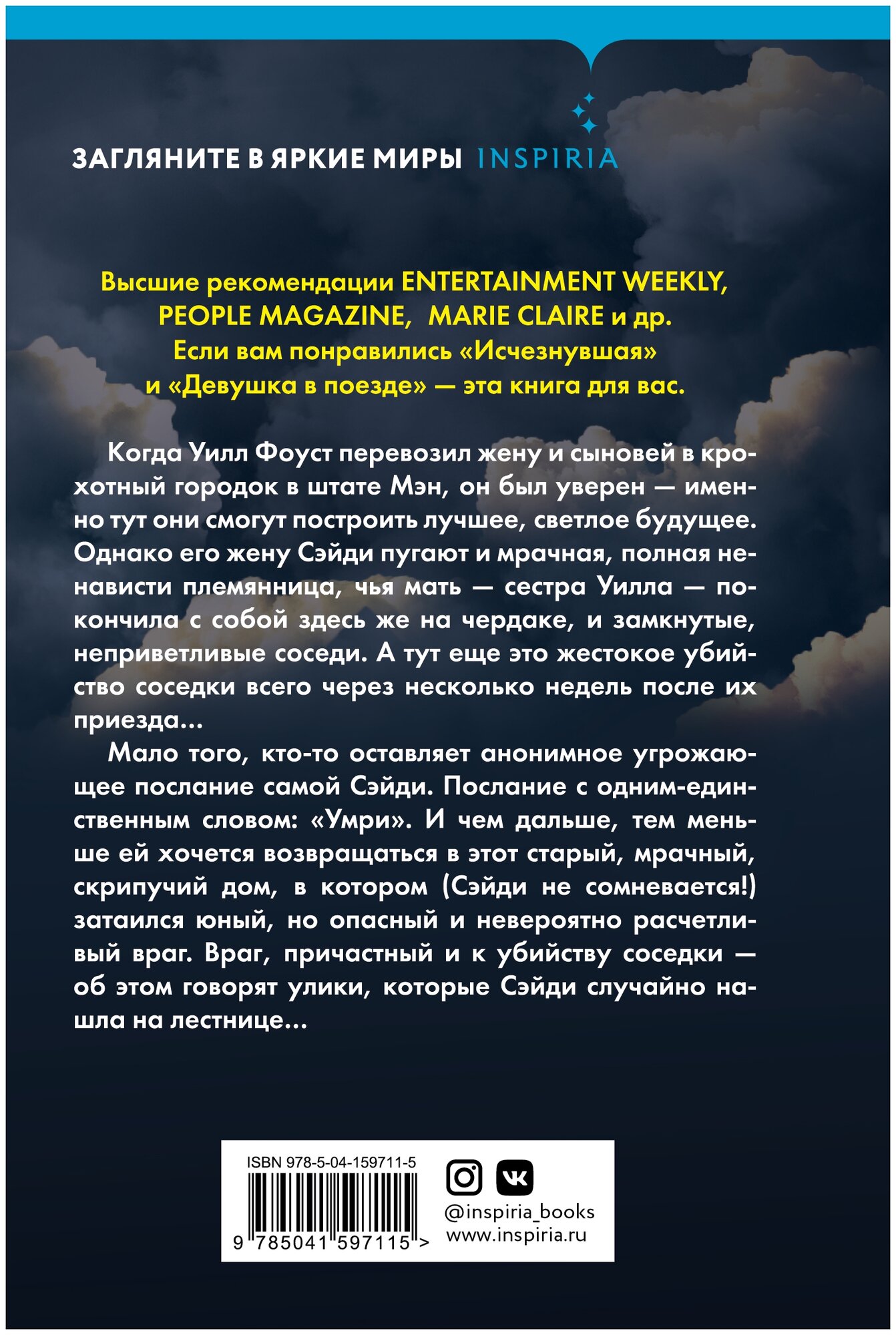 Мало того: кто-то оставляет анонимное, угрожающее послание самой Сэйди. Послание с одним единственным словом. "Умри". И чем дальше, тем меньше ей хочется возвращаться в этот старый, мрачный, скрипучий дом, в котором (Сэйди не сомневается!) затаился юный, но опасный и невероятно расчетливый враг. Враг, причастный и к убийству соседки тоже - об этом говорят улики, которые Сэйди случайно нашла на лестнице…