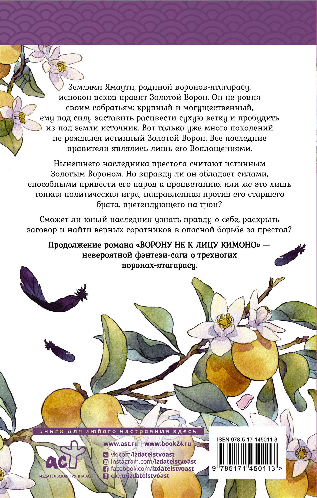Перед вами продолжение романа "Ворону не к лицу кимоно" — невероятной фэнтези-саги о трехногих воронах-ятагарасу.