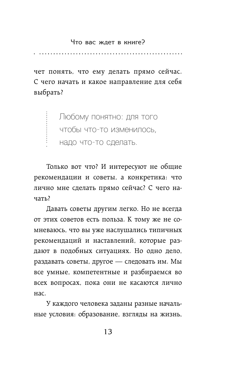 Интересная и полезная книга, основанная на опыте самого автора, который знакомит читателя со своим необычным методом и дает советы, которые пригодятся каждому. Поможет разобраться в своих желаниях и оценить собственные возможности, повысить собственную продуктивность, даст понять, что твоя жизнь зависит лишь от тебя самого, а не от посторонних факторов. Структура книги очень удобная и понятная, нет ничего лишнего, все четко и по делу описывается, а главное подробно и наглядно.