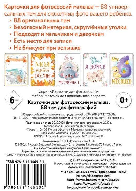 Карточки для фотосессий малыша. 88 тем для фотографий (.); АСТ, 2022