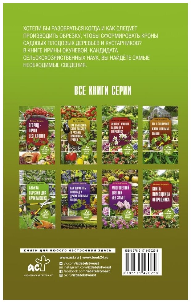 На сегодняшний день товар «Книга: Азбука обрезки для начинающих (Ирина Окунева); АСТ, Кладезь, 2022» можно купить с кешбеком в 1 магазине: Читай-город
