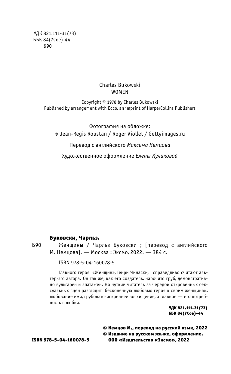 Книга: Женщины (Чарльз Буковски); Эксмо, Редакция 1, 2022
