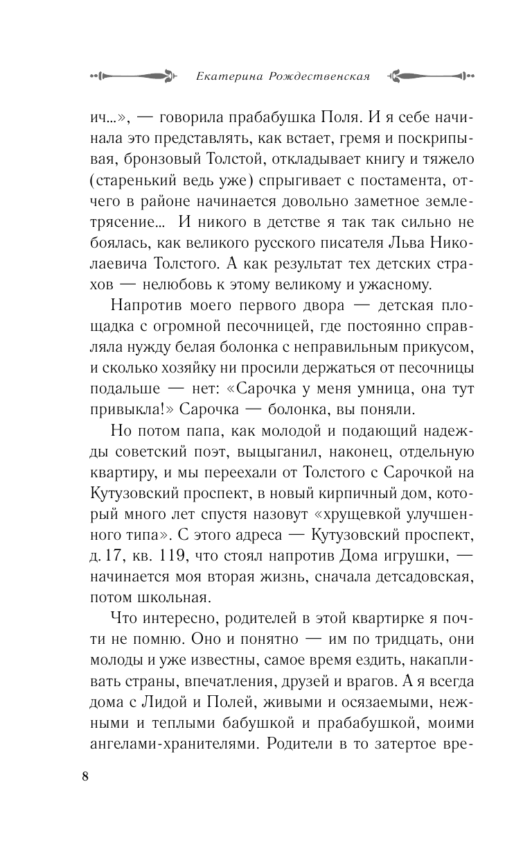 Великолепная книга! Прочитала вторую кн игу Екатерины Рождественской и второй раз практически не отрываясь. Читая, вдруг поняла, что могу читать этого автора все что угодно, хоть рецепт пирога, хоть отчёт о работе, настолько приятен и понятен её слог. Огромное удовольствие! И действительно, погружаешься в то время когда все было проще, человечество, добрее и понятнее. Браво! Всем читать!