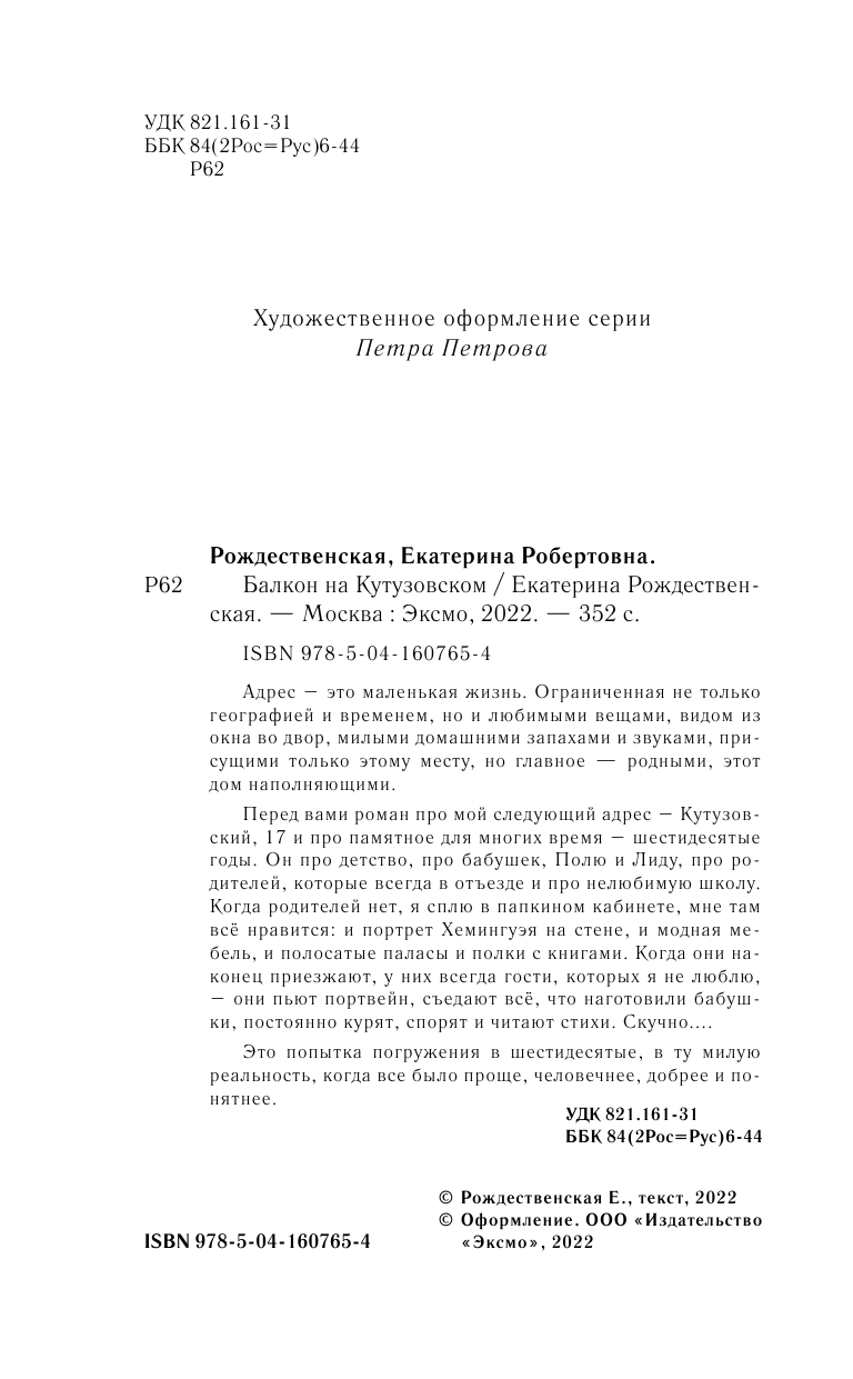 Книга: Балкон на Кутузовском (Рождественская Екатерина Робертовна); ООО "Издательство "Эксмо", 2022