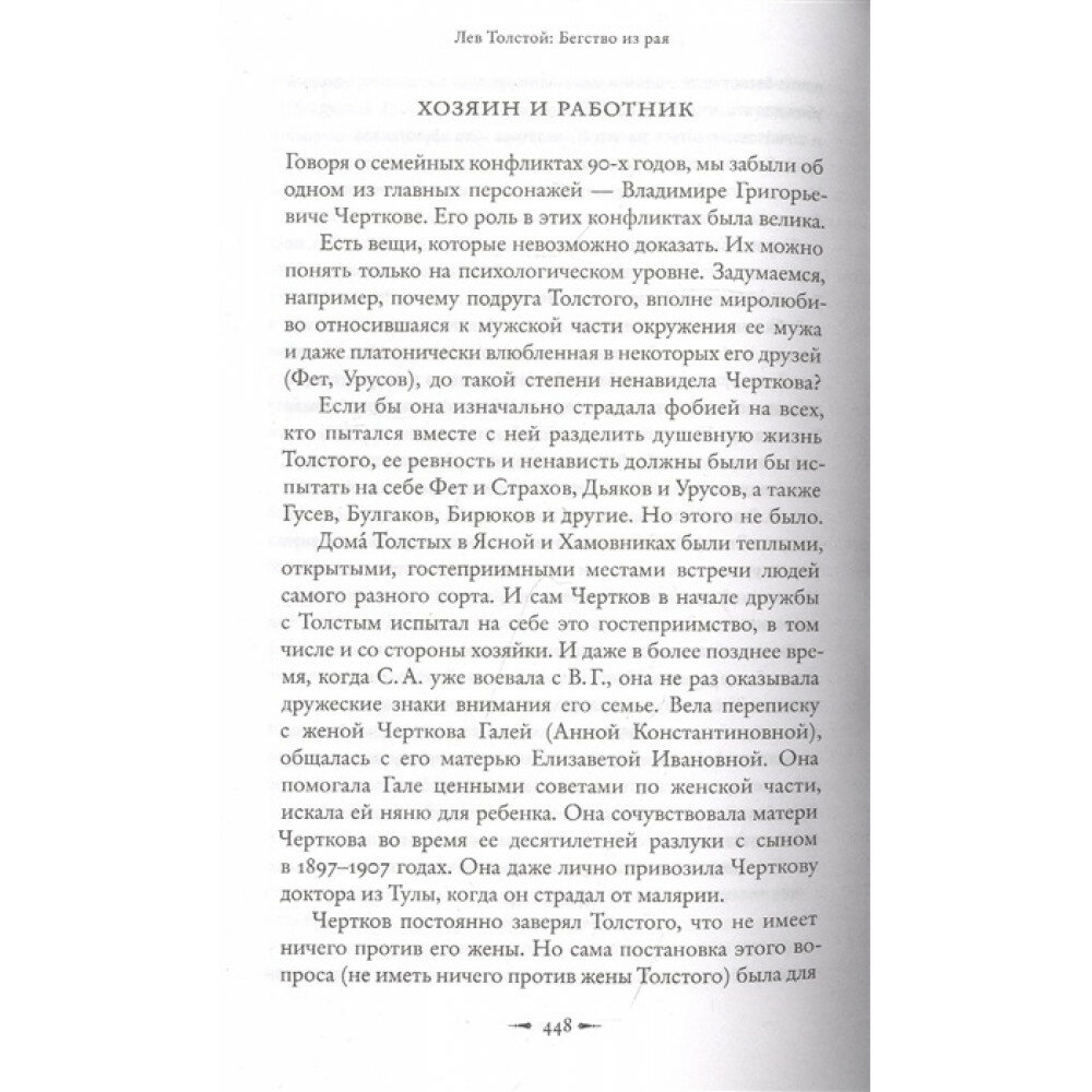 Я читала разную литературу, с множеством точек и глов зрения, основательно изучала биографию писателя, но лишь в книге Павла Валерьевича «Лев Толстой. Бегство из рая» я нашла исчерпывающие ответы на беспокоящие меня «проклятые вопросы».