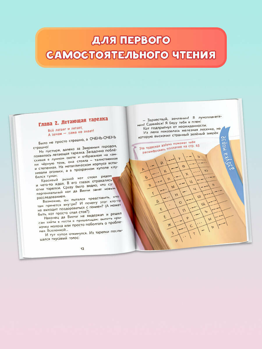 Замечательная история, которая очень понравилась моему младшему брату, не особо любящему читать. Книга является частью книжной серии "Кот да Винчи" и рассказывает о преключениях Кота да Винчи и его друзей. Множество красочных иллюстраций с забавными подписями и небольшие головоломки будут увлекательны для детей младшего школьного возраста. Эта книга станет хорошим подарком для ребёнка.