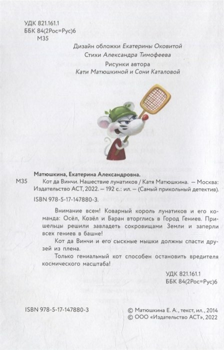 Кот да Винчи. Нашествие лунатиков (Матюшкина Екатерина Александровна); ООО "Издательство Астрель", 2022