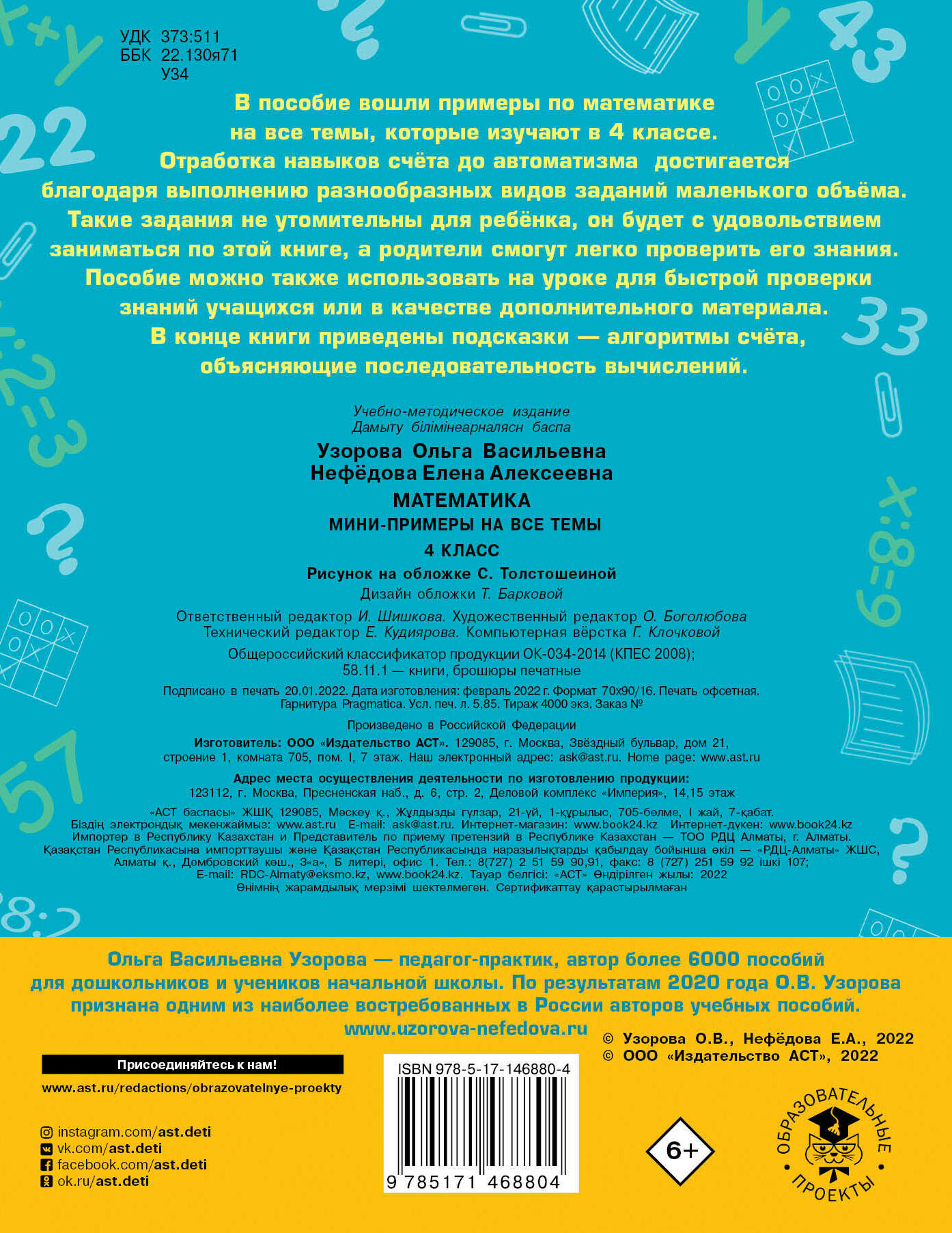 Математика. Мини-примеры на все темы школьного курса. 4 класс (Нефедова Елена Алексеевна; Узорова Ольга Васильевна); ИЗДАТЕЛЬСТВО "АСТ", 2022