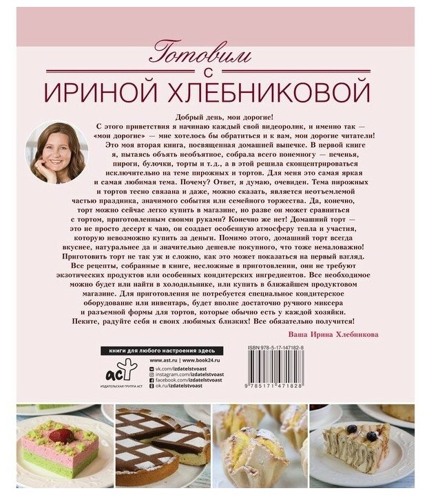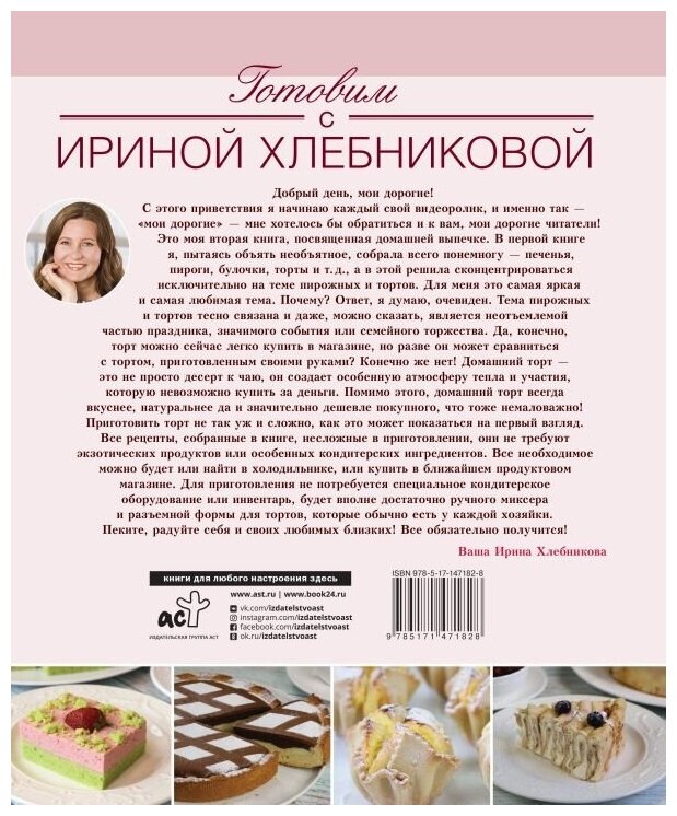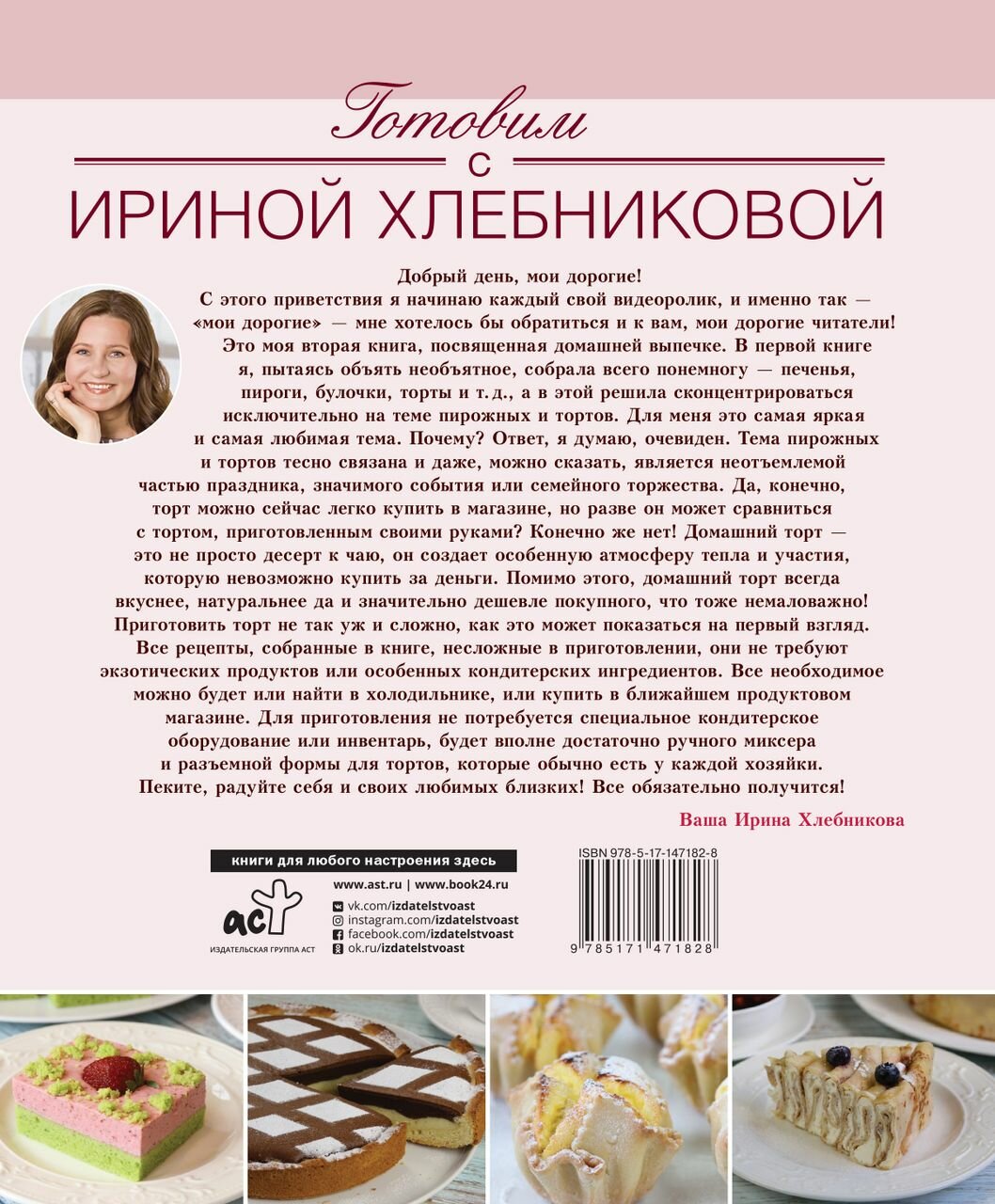 Это моя вторая книга, посвященная домашней выпечке. В первой книге я, пытаясь объять необъятное, собрала всего понемногу - печенья, пироги, булочки, торты и т. д., а в этой решила сконцентрироваться исключительно на теме пирожных и тортов. Для меня это самая яркая и самая любимая тема. Почему? Ответ, я думаю, очевиден. Тема пирожных и тортов тесно связана и даже, можно сказать, является неотъемлемой частью праздника, значимого события или семейного торжества. Да, конечно, торт можно сейчас легко купить в магазине, но разве он может сравниться с тортом, приготовленным своими руками? Конечно же нет! Домашний торт - это не просто десерт к чаю, он создает особенную атмосферу тепла и участия, которую невозможно купить за деньги. Помимо этого, домашний торт всегда вкуснее, натуральнее да и значительно дешевле покупного, что тоже немаловажно!
