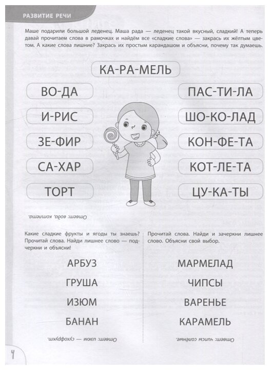 В книге вы найдёте более 100 интересных практических заданий по развитию речи, изучению мира вокруг, по математике и развитию познавательных способностей – внимания, памяти и мышления. На страницах этого пособия представлен современный интерактивный подход – в ходе выполнения заданий ребенок проводит линии, обводит, раскрашивает, отвечает на вопросы и т.д. Совсем немного теории – для лучшего понимания того, что мы делаем в ходе развивающих занятий и к какой цели движемся.