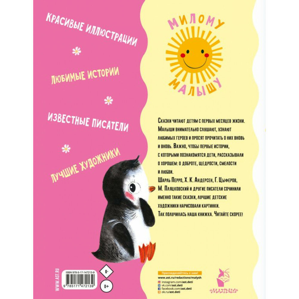 В книгу вошли произведения авторов разных стран и эпох, от Шарля Перро до Михаила Пляцковского. Все они очень разные, но каждый из них умеет рассказывать завораживающие волшебные истории, полные любви и доброты. Такие сказки полезно читать детям. Они учат отличать хорошее от плохого, доброе от злого и развивают эмоциональный интеллект ребенка. А еще в них живут забавные персонажи, которые быстро становятся настоящими друзьями малышу.