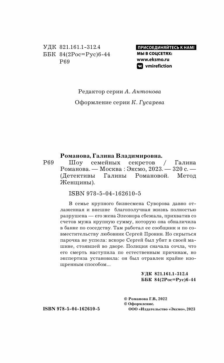 Книга: Шоу семейных секретов (Романова Галина Владимировна); ООО "Издательство "Эксмо", 2022