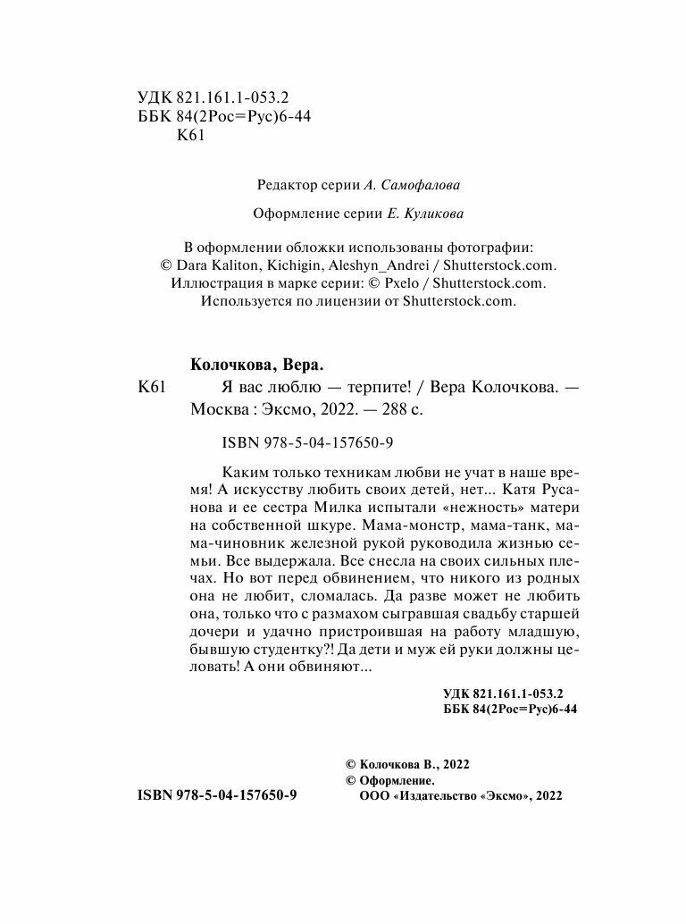 Сервис сравнения цен СкидкаГИД предлагает сравнить цены на товар «Книга: Я вас люблю - терпите! (Колочкова Вера Александровна); Эксмо, Редакция 1, 2022»
