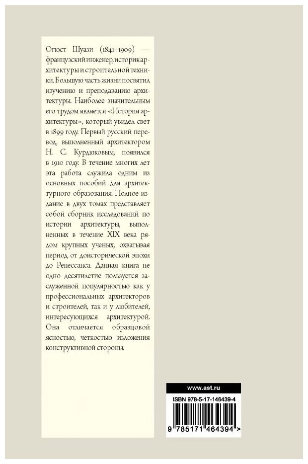 Всеобщая история архитектуры. От доисторической эпохи до Ренессанса (Шуази Огюст); ИЗДАТЕЛЬСТВО "АСТ", 2022