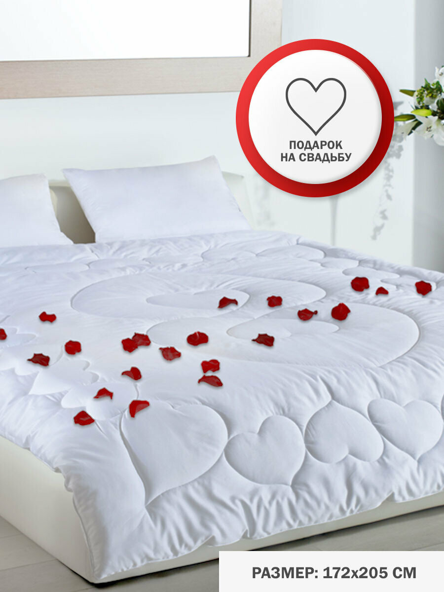 Одеяло Wedding 2 спальное 172х205 всесезонное в хлопковом чехле с наполнителем Экофайбер с принтом "Сердце" подарок на свадьбу Hoff (размер: 2-спальный)