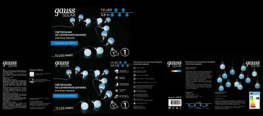 Садовые светильники-гирлянды Gauss с белым цветом свечения способны создать яркое освещение для парковых и придомовых территорий. Такой вид освещения будет красиво смотреться при украшении елей, лампы с диаметров 5 см будут видны издалека и смотреться фантастически при любых погодных условиях. Гирлянды Gauss® Solar работают от солнечной батареи, использующей энергию солнца для зарядки встроенного аккумулятора, поэтому являются экологически чистыми и экономят электроэнергию.