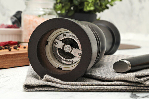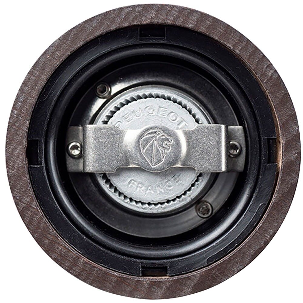 Перезаряжаемая электрическая мельница для соли удивительно эффективна. Ее мотор скрыт под элегантным корпусом из массива бука. Заряда встроенных батарей, от которых она работает, хватит на четыре полных резервуара специй. Разъем для подзарядки не нарушает эстетичный вид изделия и находится под верхней круглой частью мельницы, там же спрятан индикатор подзарядки. Уникальный механизм U-Select от Peugeot позволяет получить 6 степеней помола продукта, для конкретного применения.