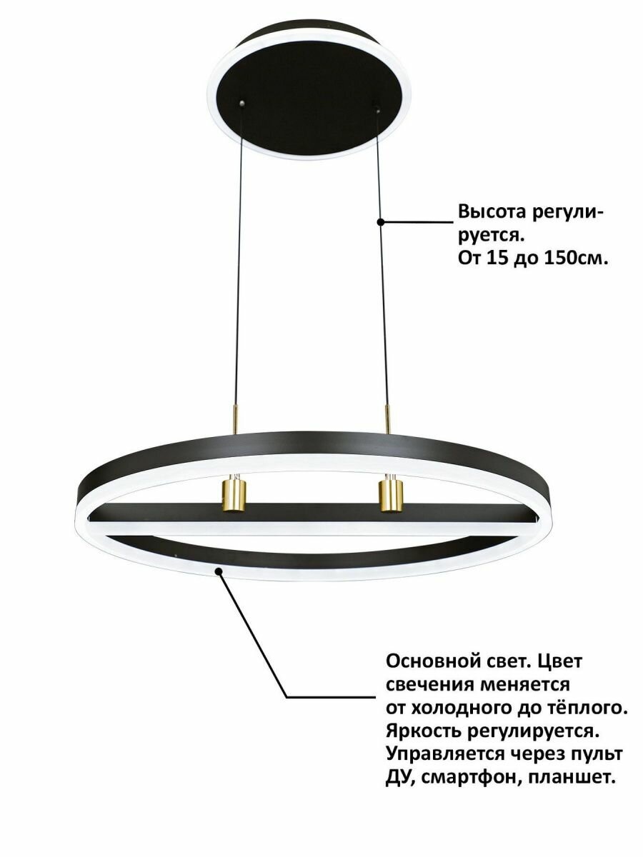 Подвесной светильник светодиодный с пультом и управлением смартфоном регулировка цветовой температуры и яркости ночной режим и таймер HIGH-TECH LED LAMPS 82048 - продукт известной компании Natali Kovaltseva (Германия). Имеет максимальную мощность 100 Вт, освещает площадь до 16 кв. м. Отлично подойдет для таких мест, как гостиная, спальня. Впишется в интерьеры следующих стилей: современный.
